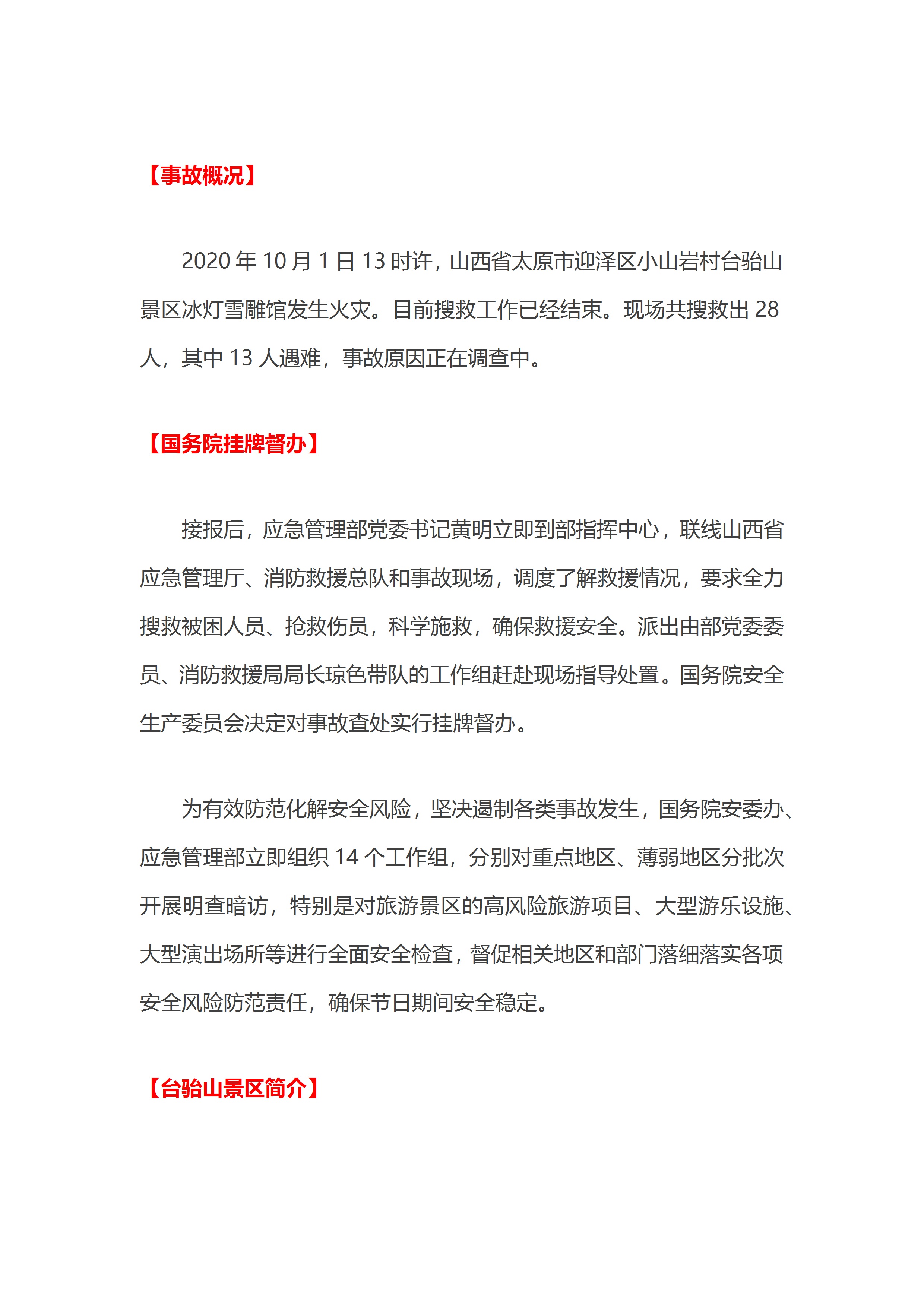 山西太原骀山景区冰灯雪雕馆发生重大火灾事故概况[文档]
