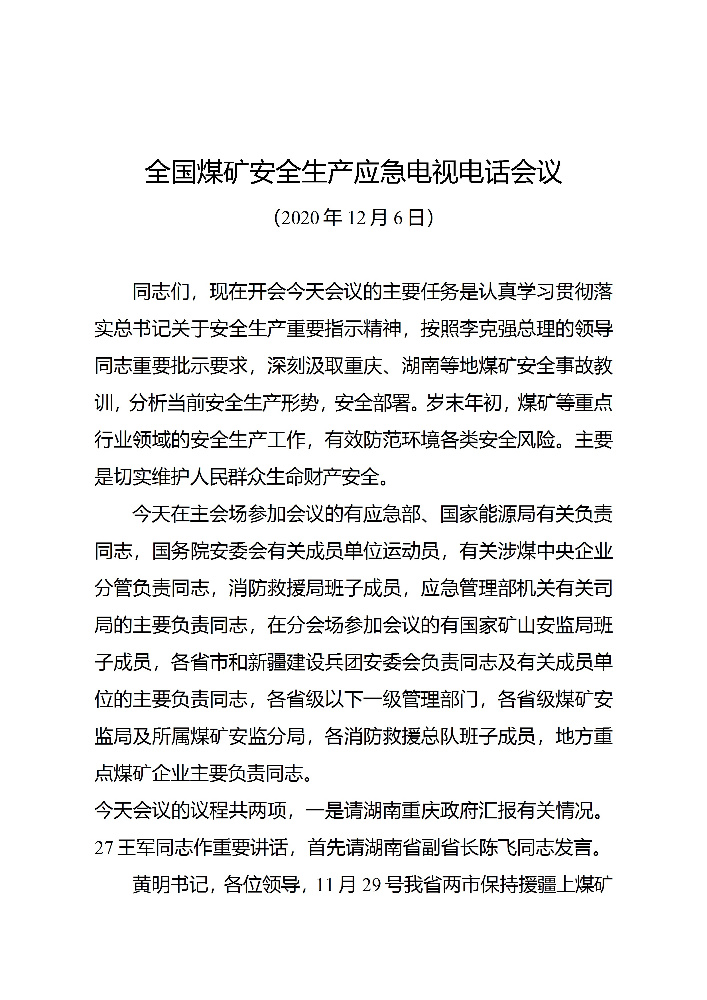 / 全国煤矿安全生产应急电视电话会议精神[文档]