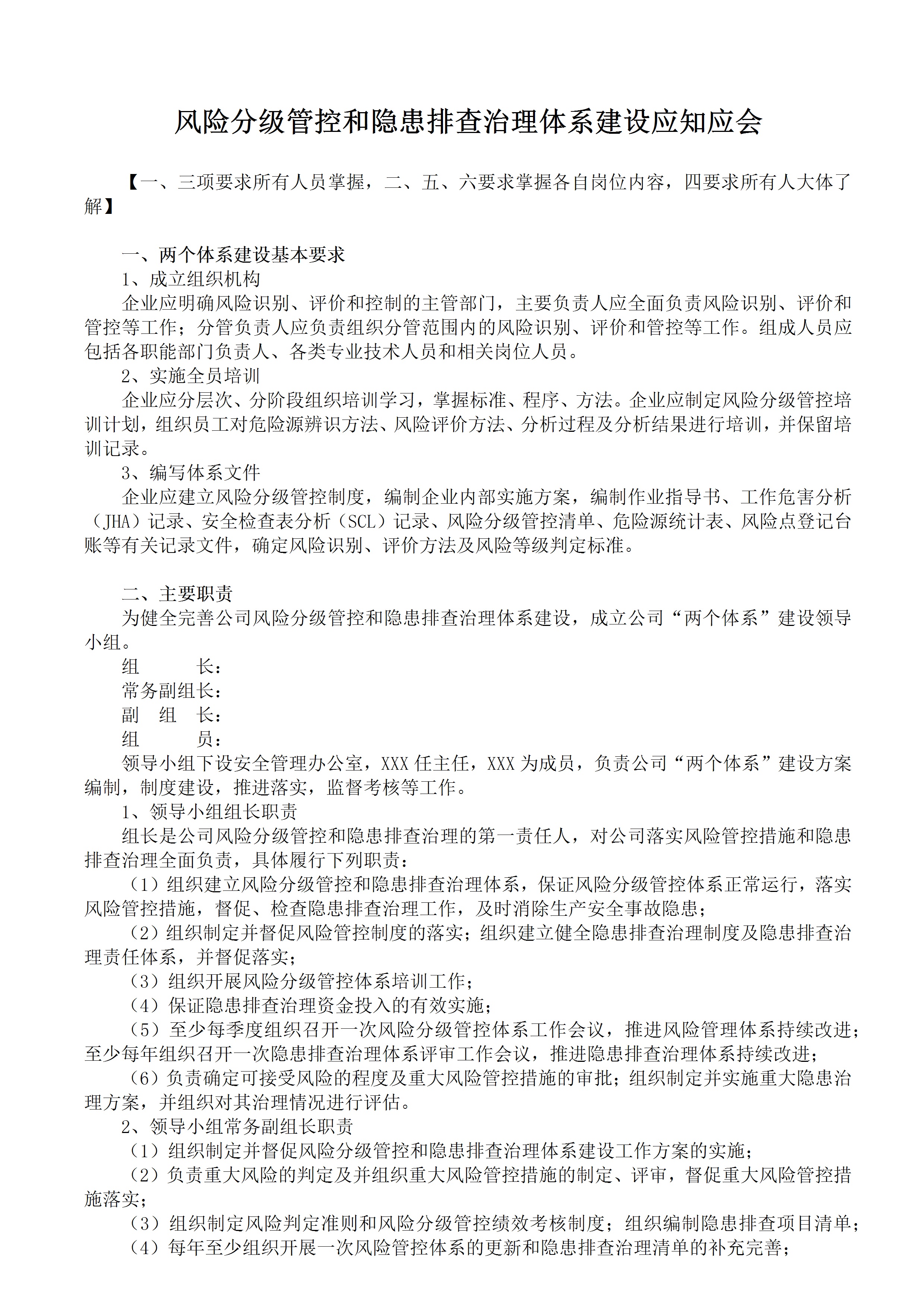 全员培训风险分级管控和隐患排查治理体系建设应知应会[文档]