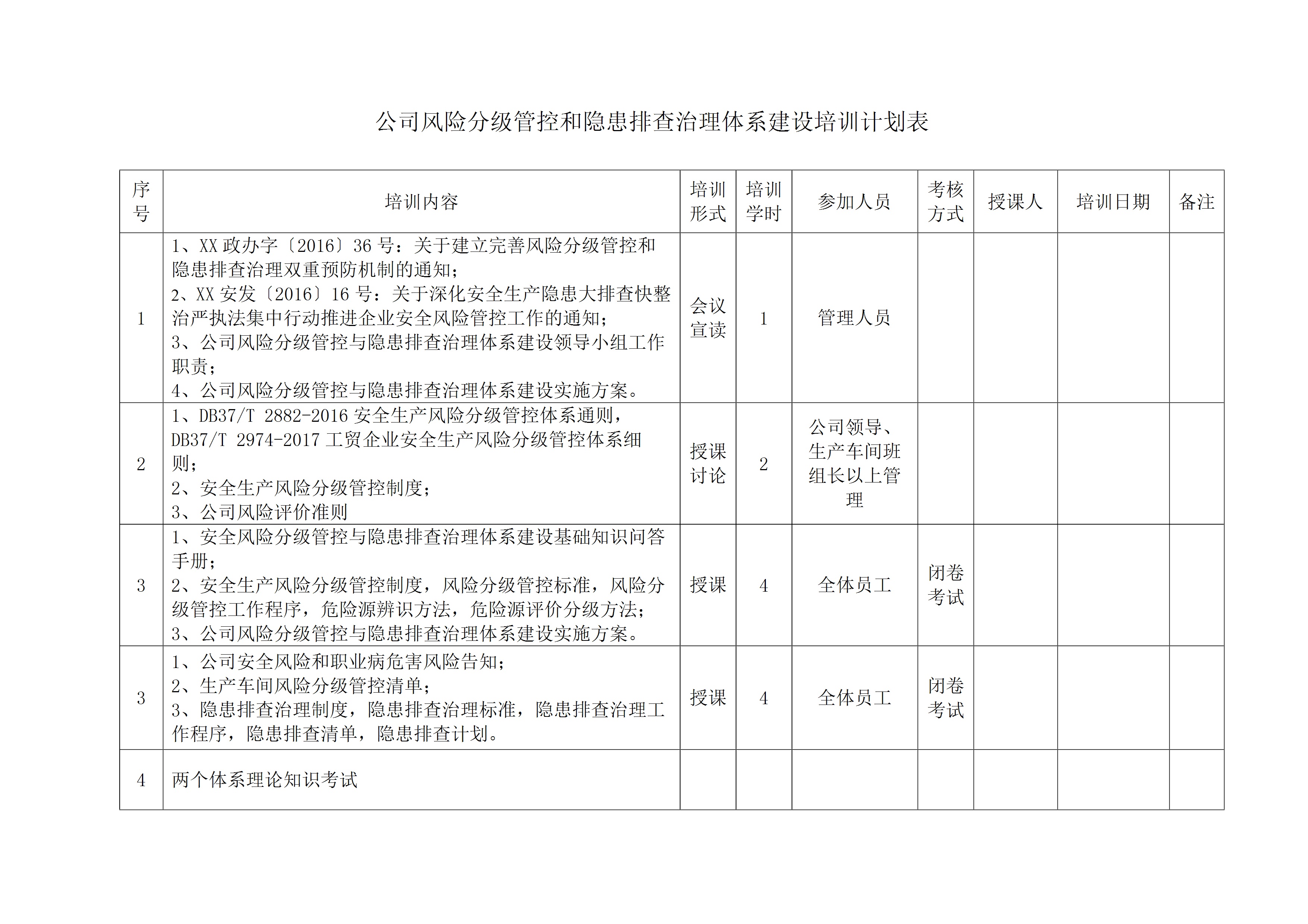 / 全员培训风险分级管控和隐患排查治理体系建设培训计划表[文档]