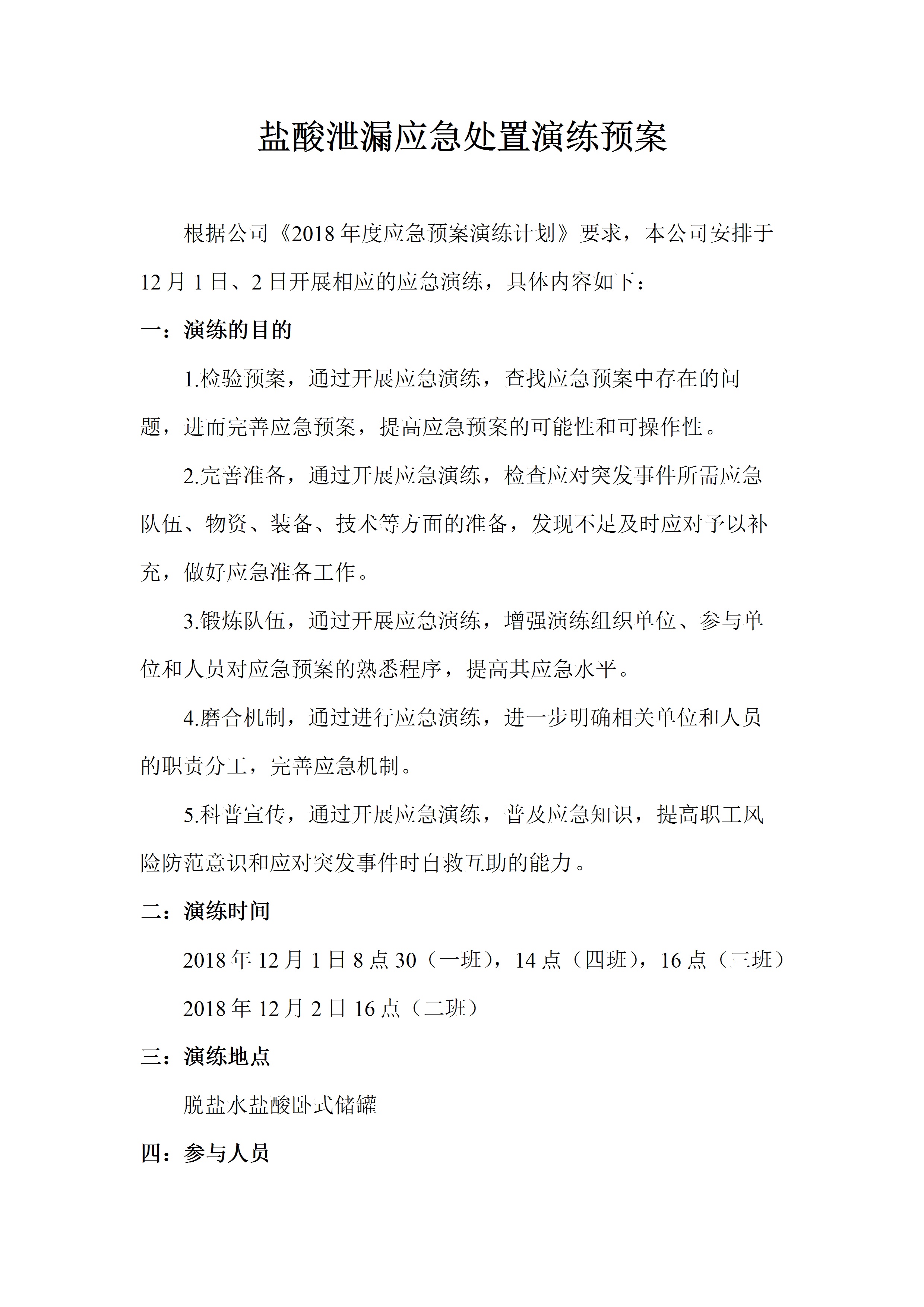 / 盐酸泄漏应急处置安全演练预案[文档]