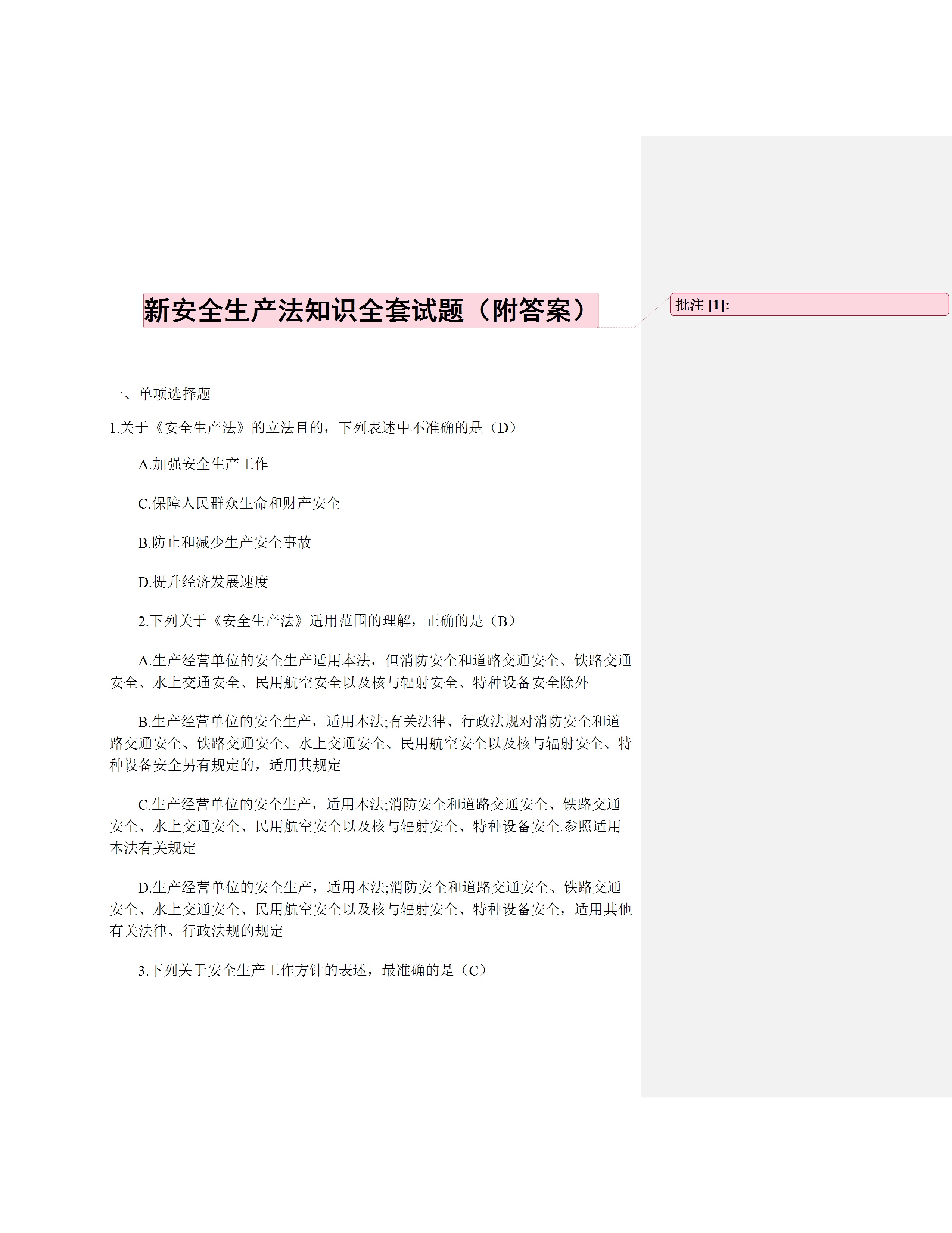 / 新安全生产法知识全套试题附答案无链接[文档]