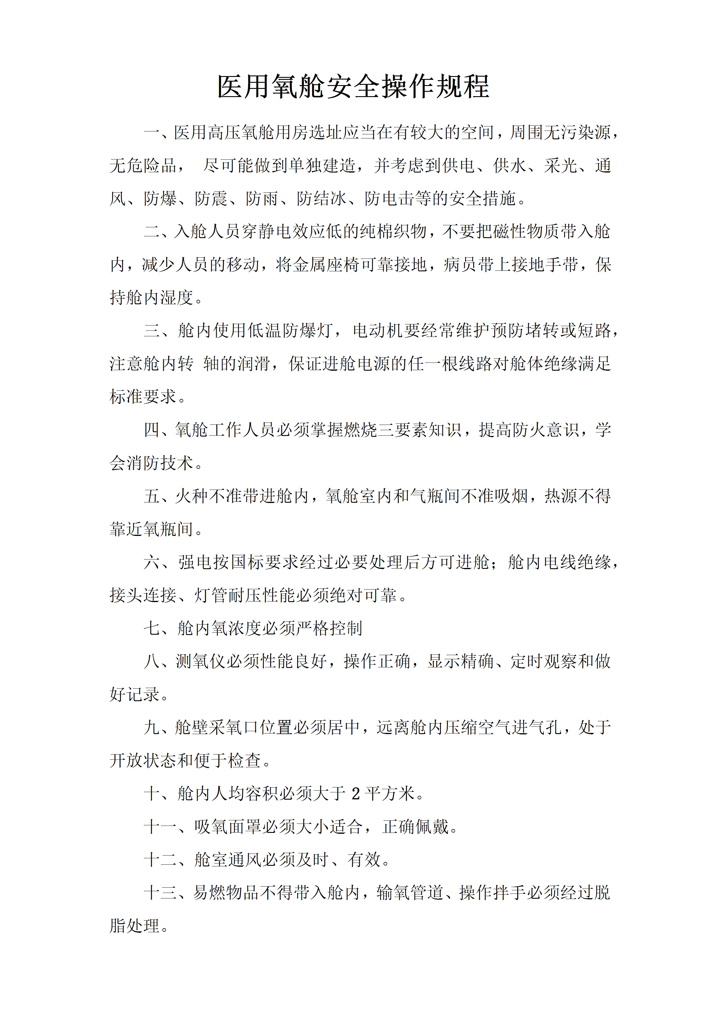 医用氧舱安全操作规程[文档]