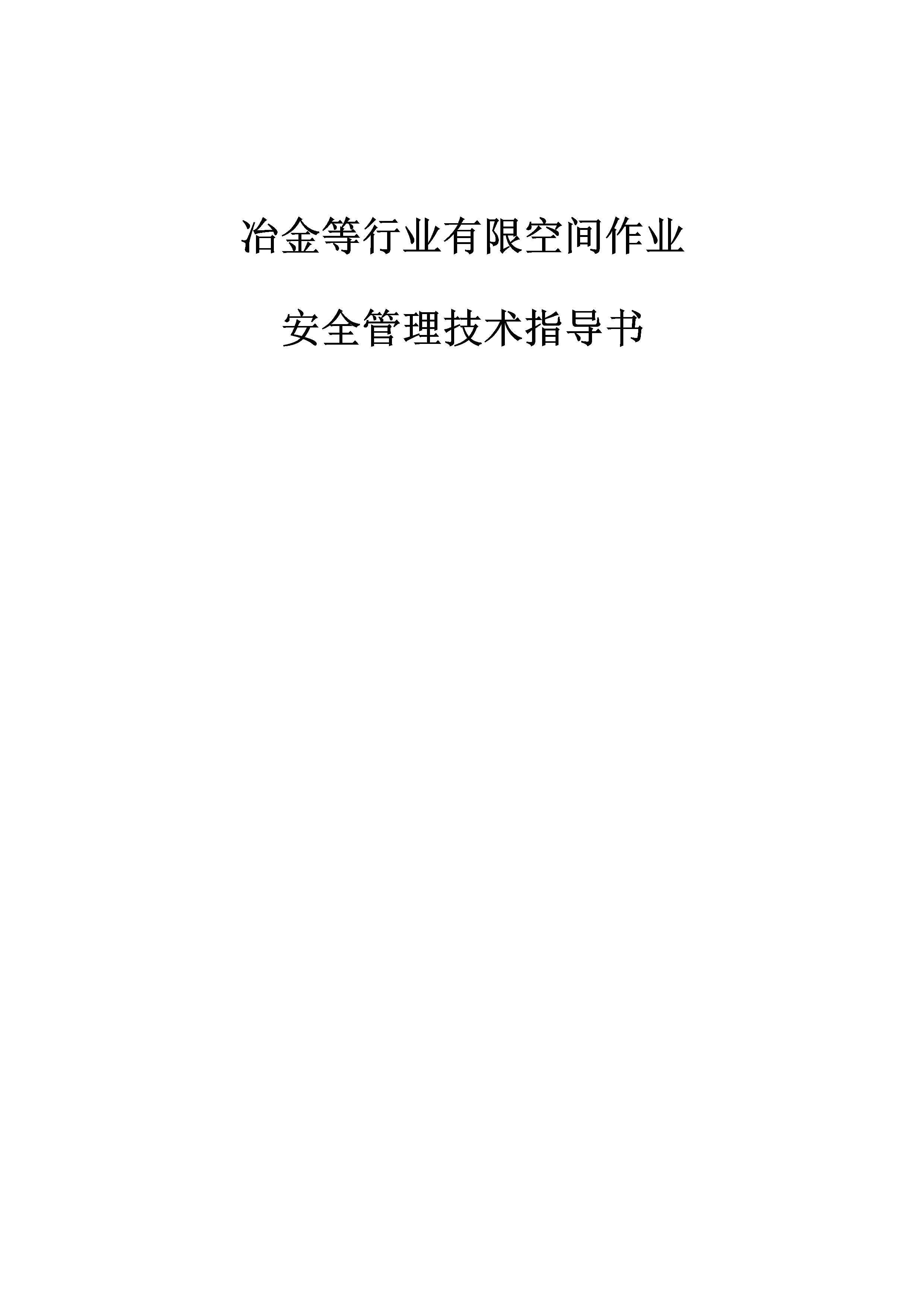 / 冶金等行业有限空间作业安全管理技术指导书[文档]