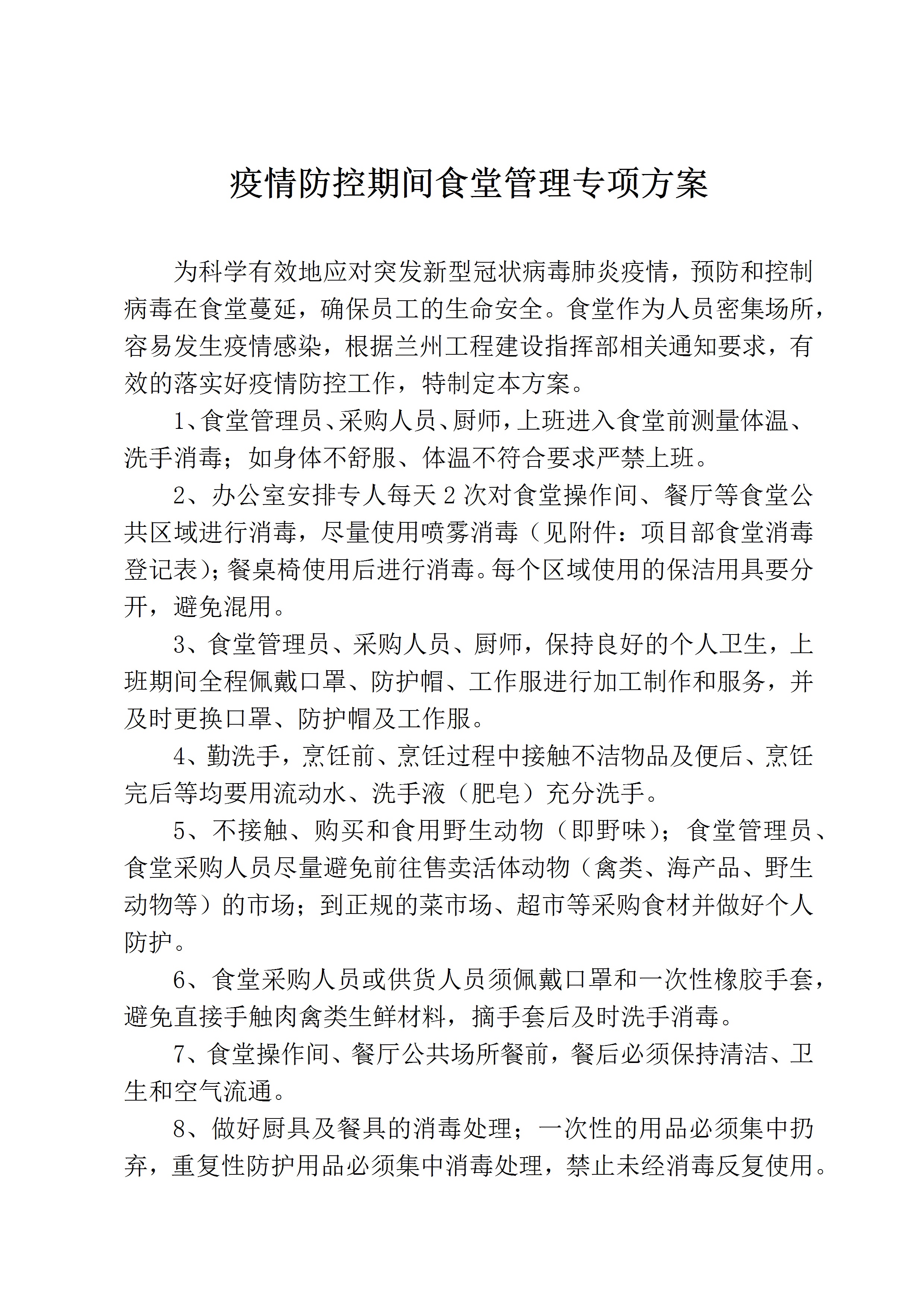 / 疫情防控期间食堂管理专项方案[文档版]