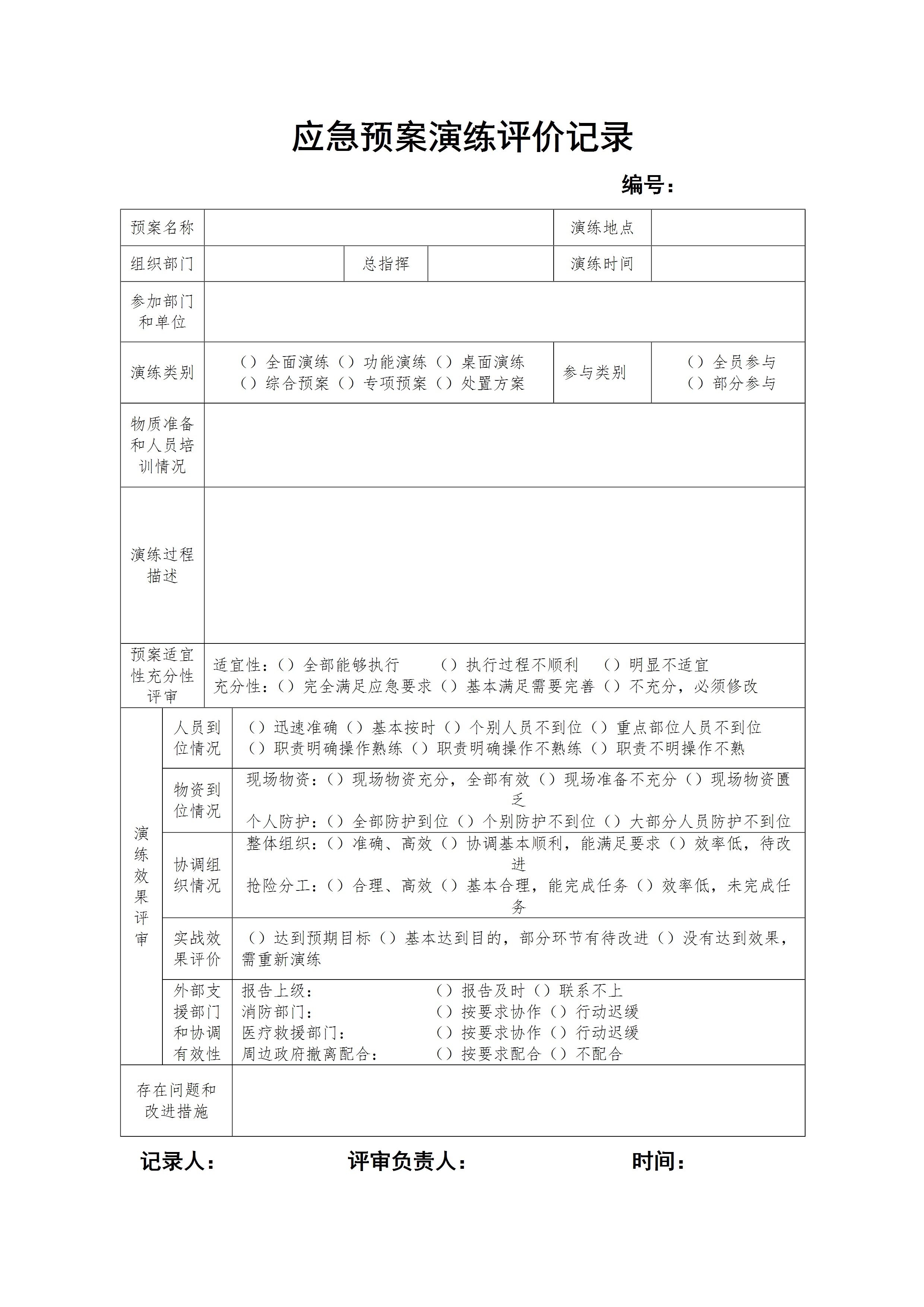 应急预案演练评价记录[文档版]