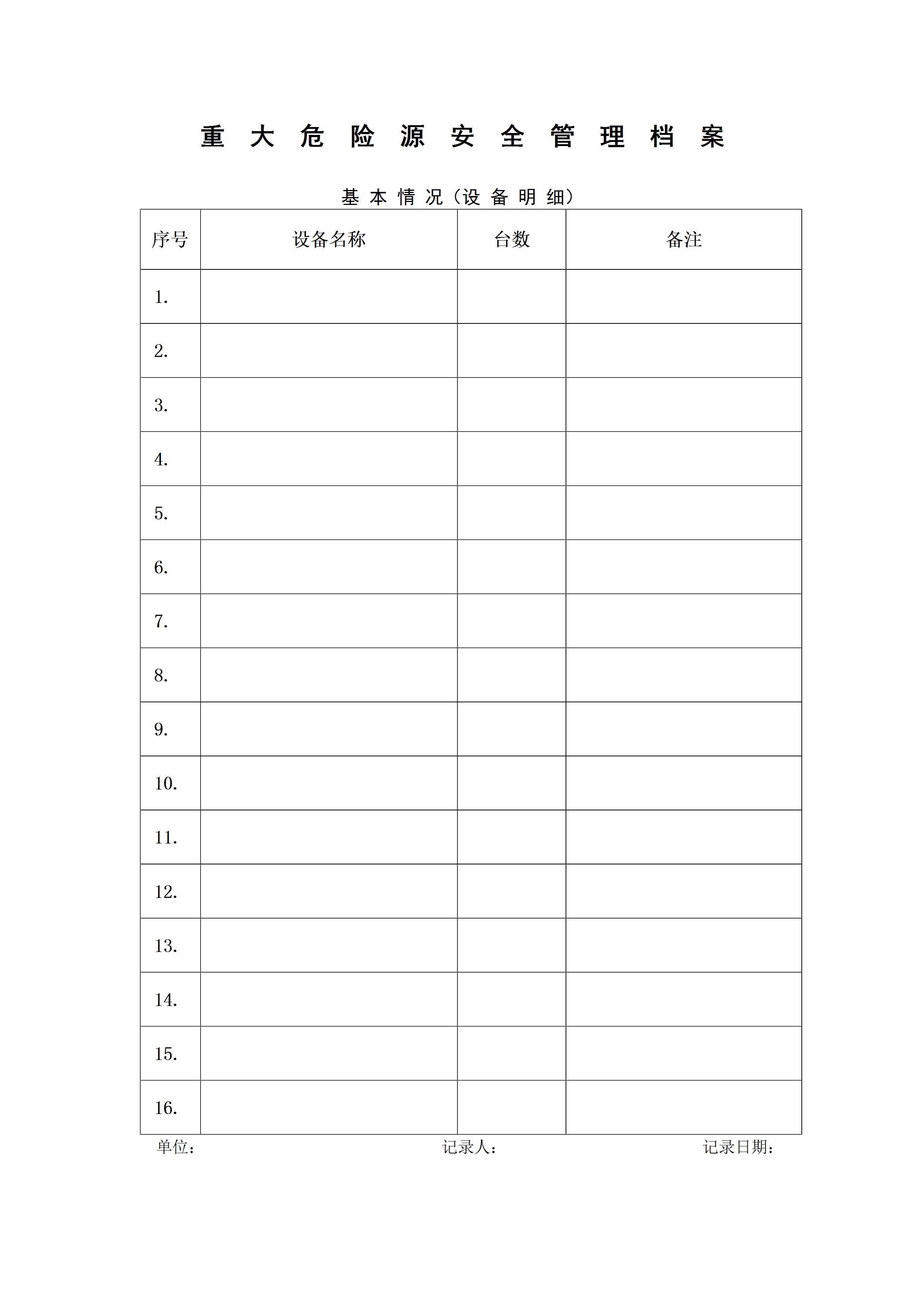 / 重大危险源安全管理档案基本情况设备明细[文档版]