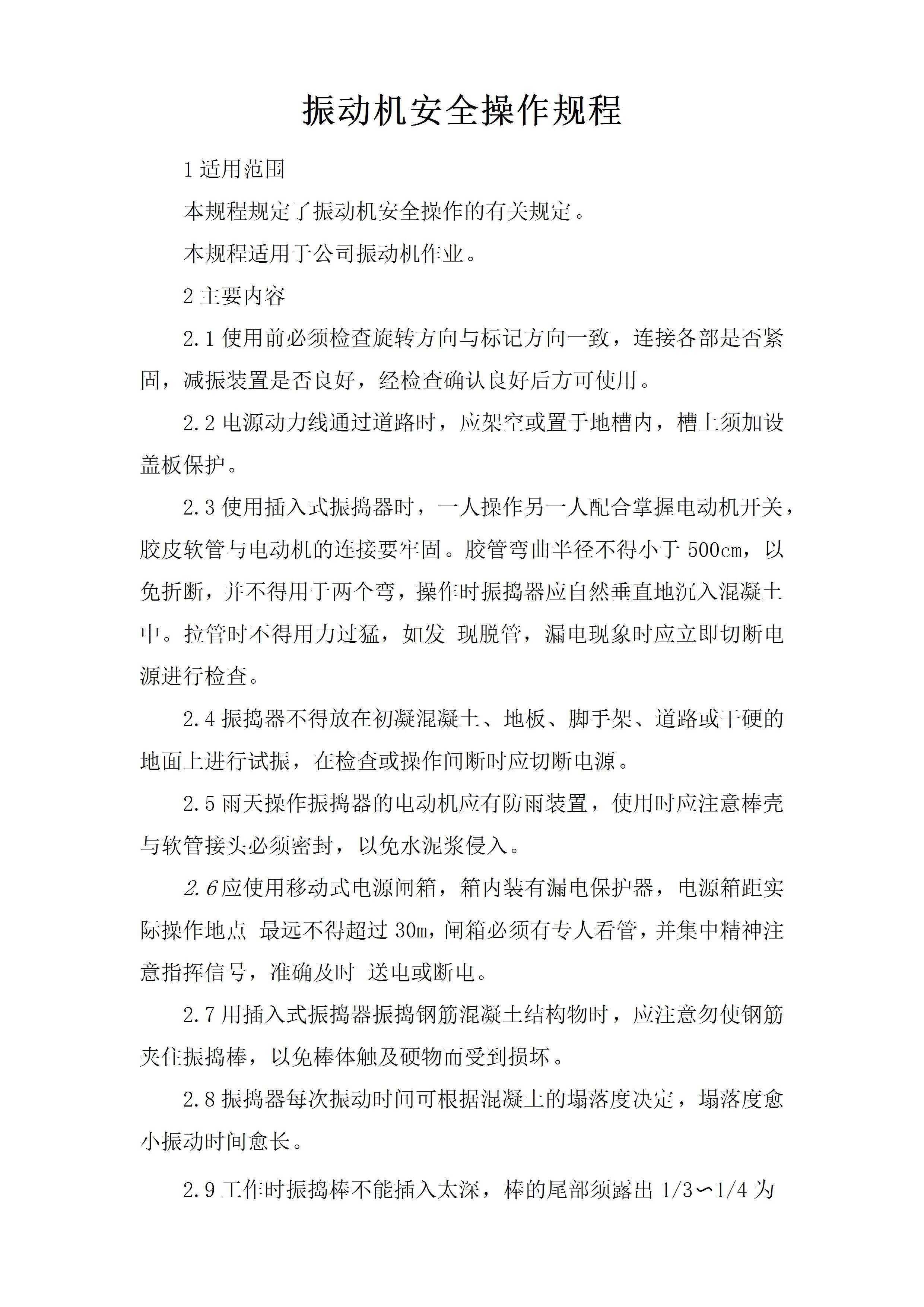 振动机安全操作规程[文档版]