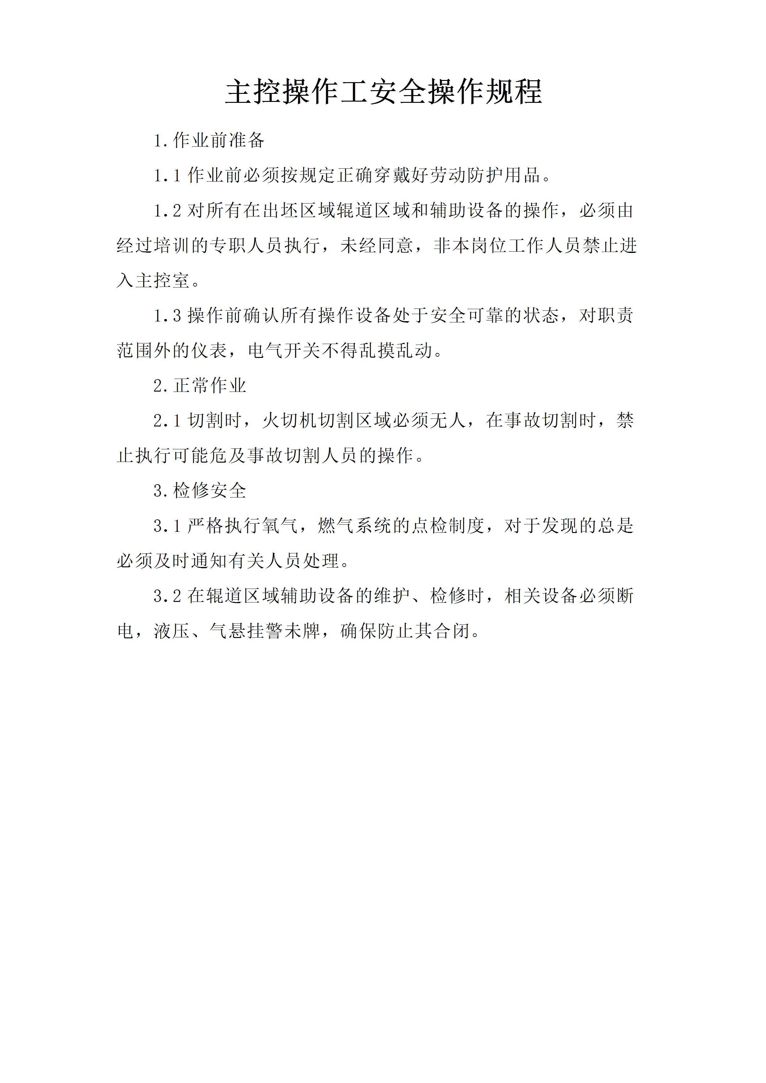 主控操作工安全操作规程[文档版]