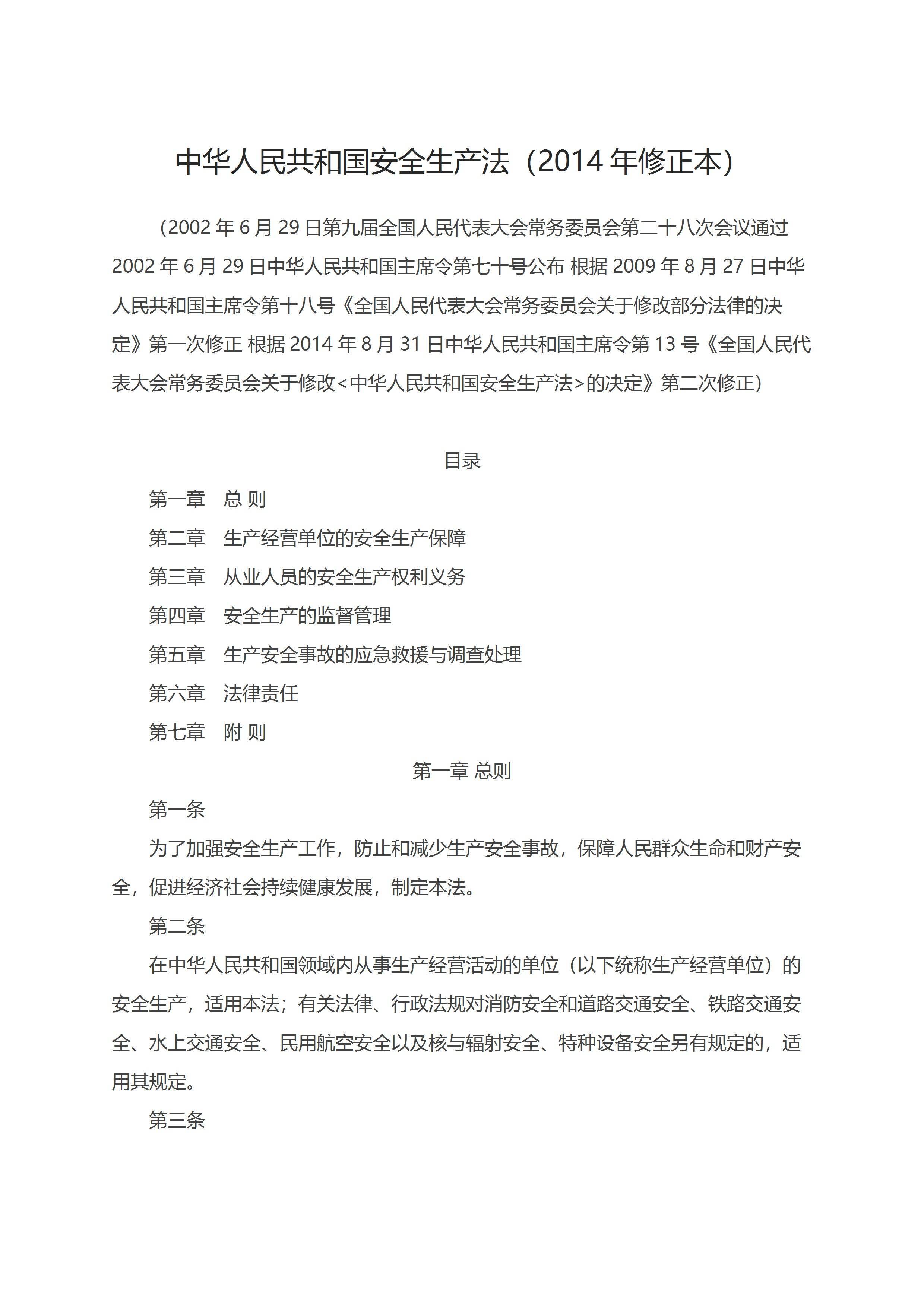 / 中华人民共和国安全生产法2014年修正本[文档版]