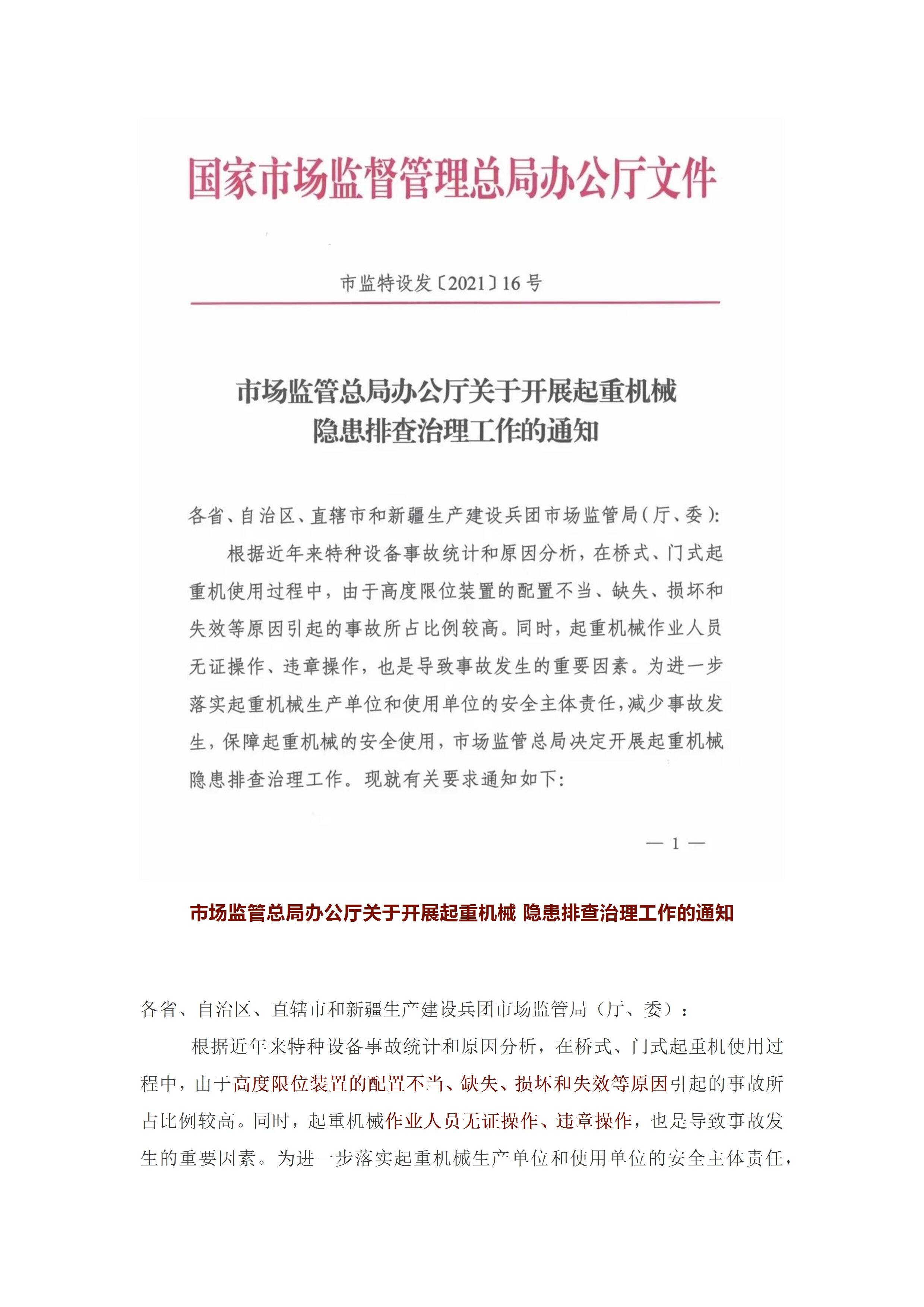 重要提示5月1日起桥式门式起重机必须设双限位装置[文档版]