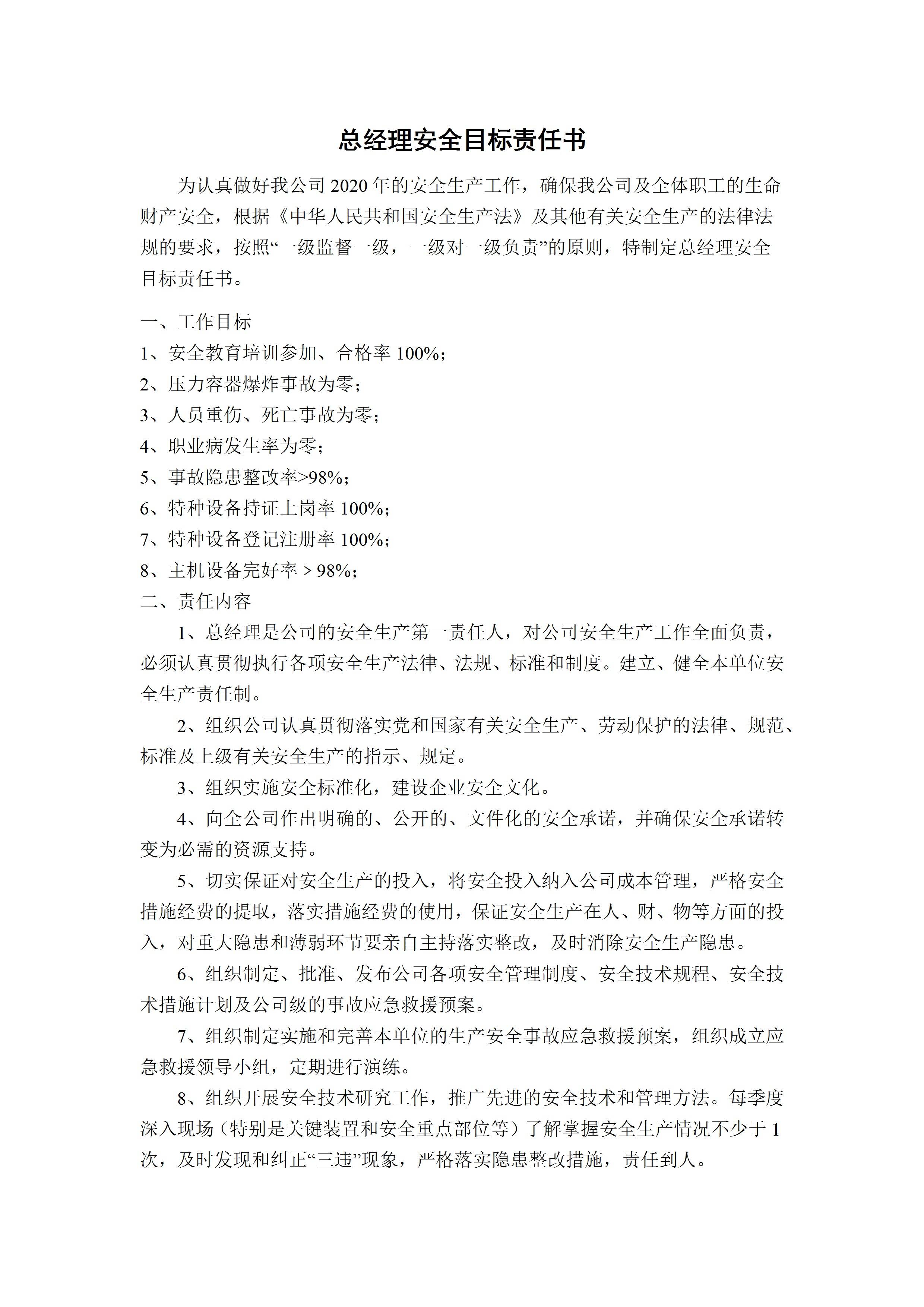 / 总经理安全目标责任书[文档版]