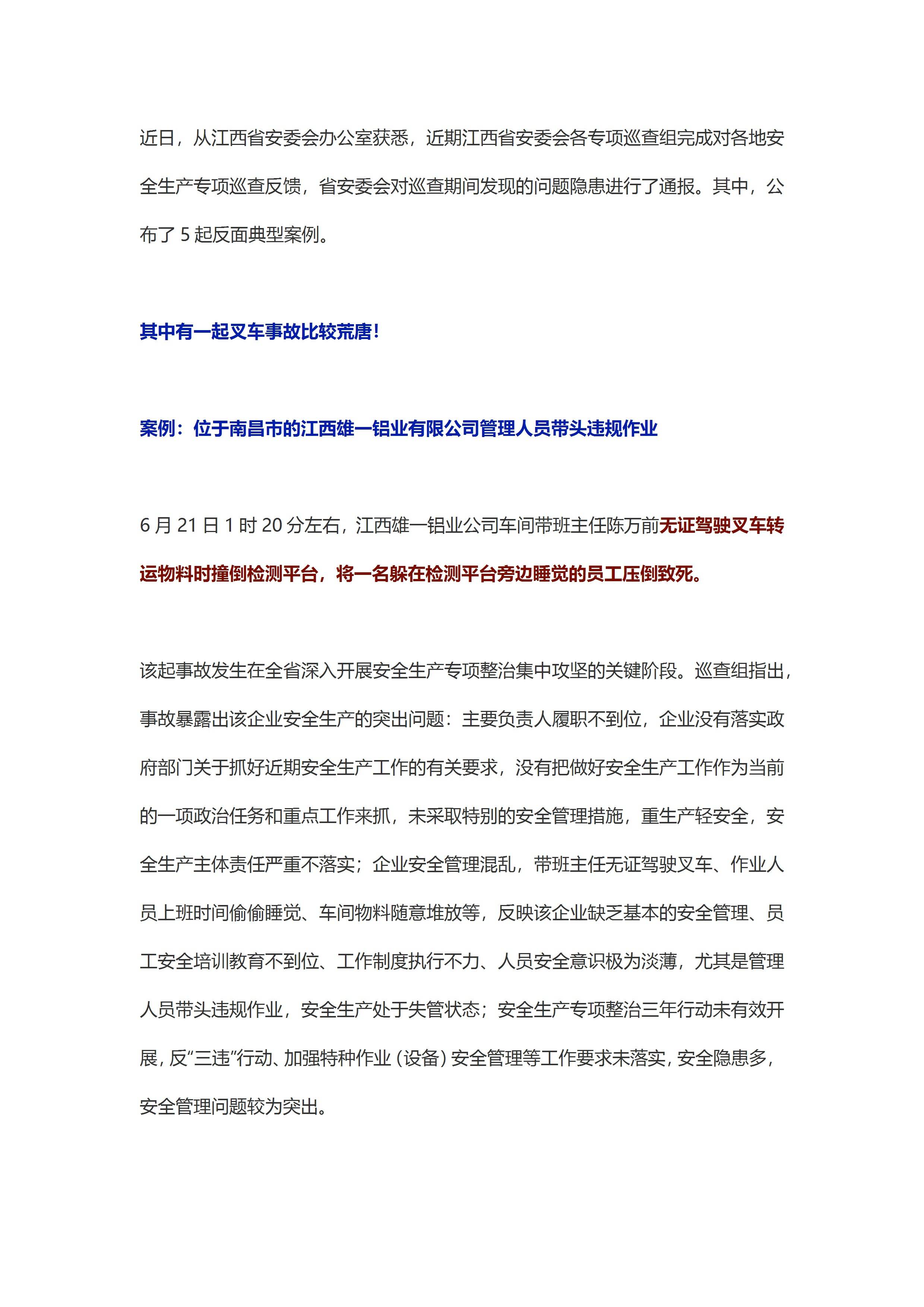 / 事故通报车间主任无证驾驶叉车将员工压倒致死[文档版]
