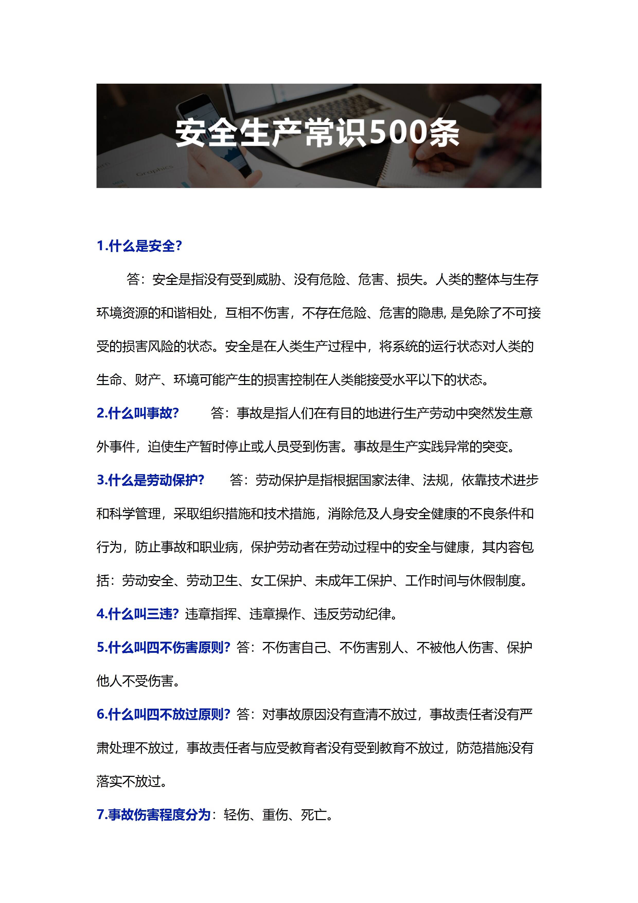 / 500条安全生产常识必看必学依据新安法编制[文档版]
