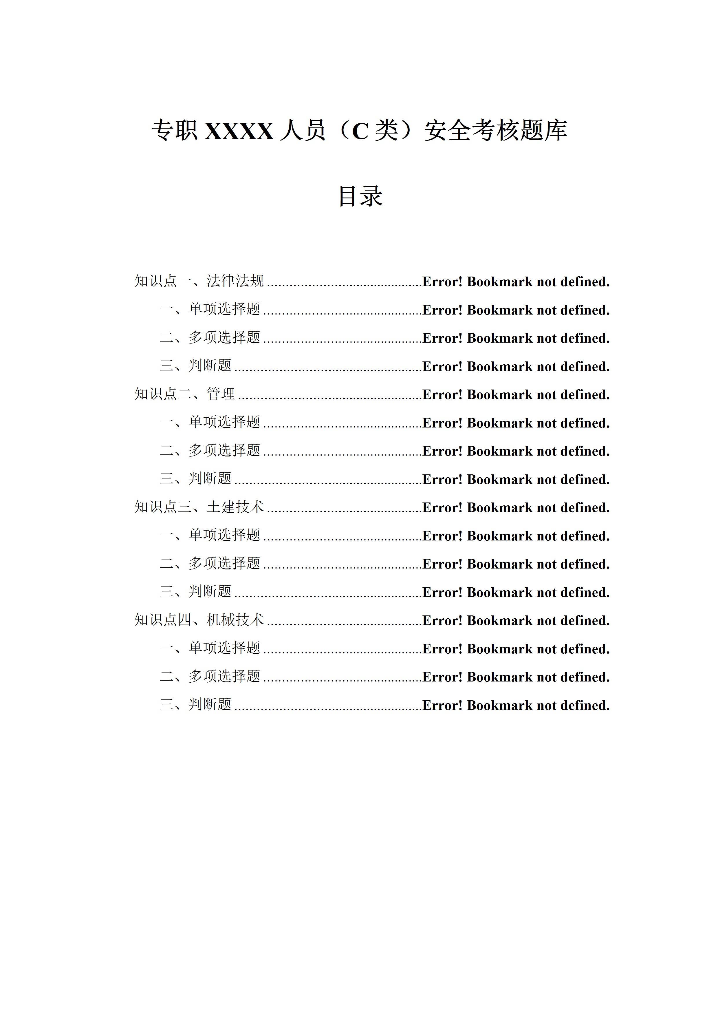 / 专职安全生产管理人员C类安全考核题库[文档版]