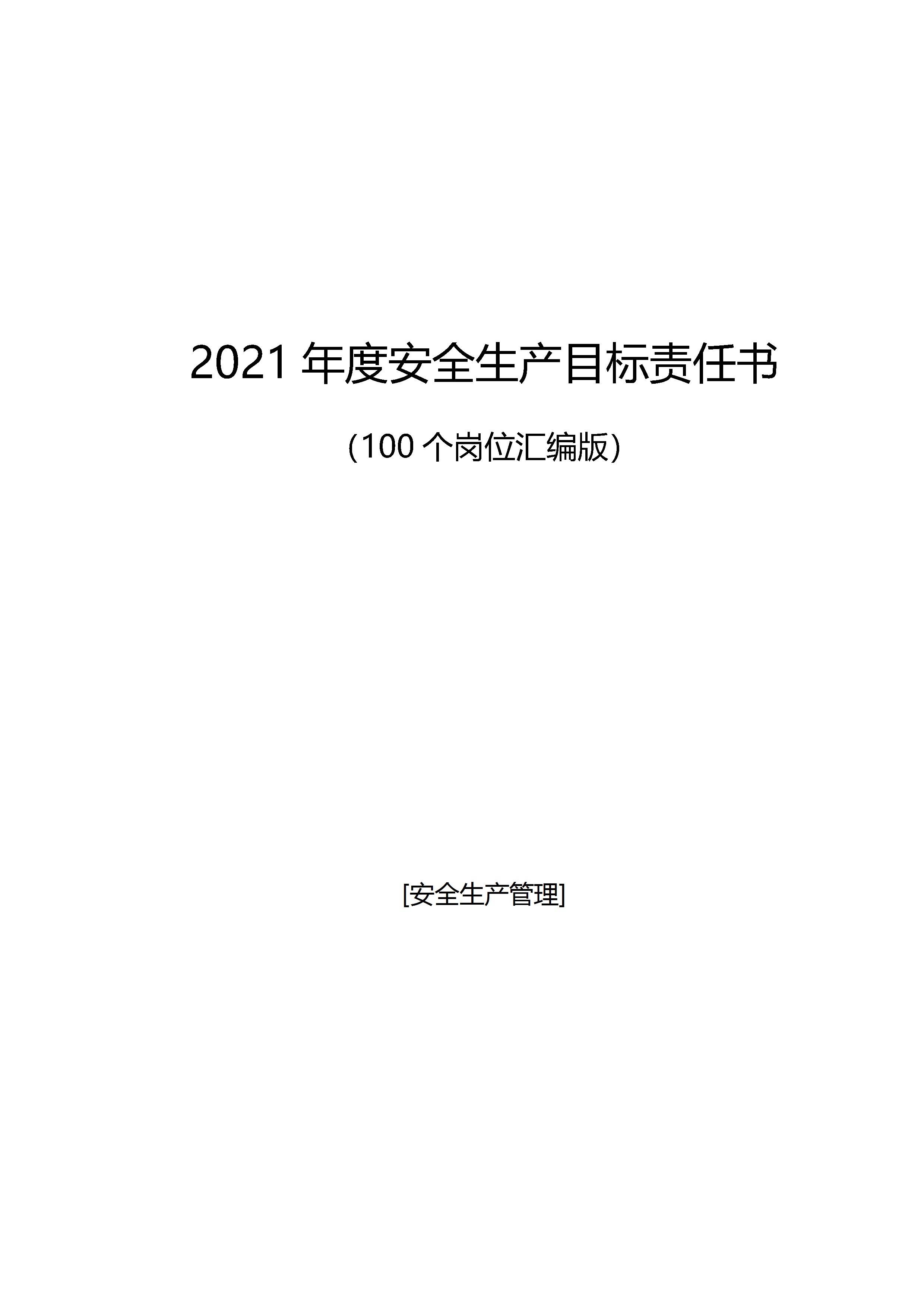 / 100个岗位2021年度安全生产目标责任书层层签订模板[文档版]