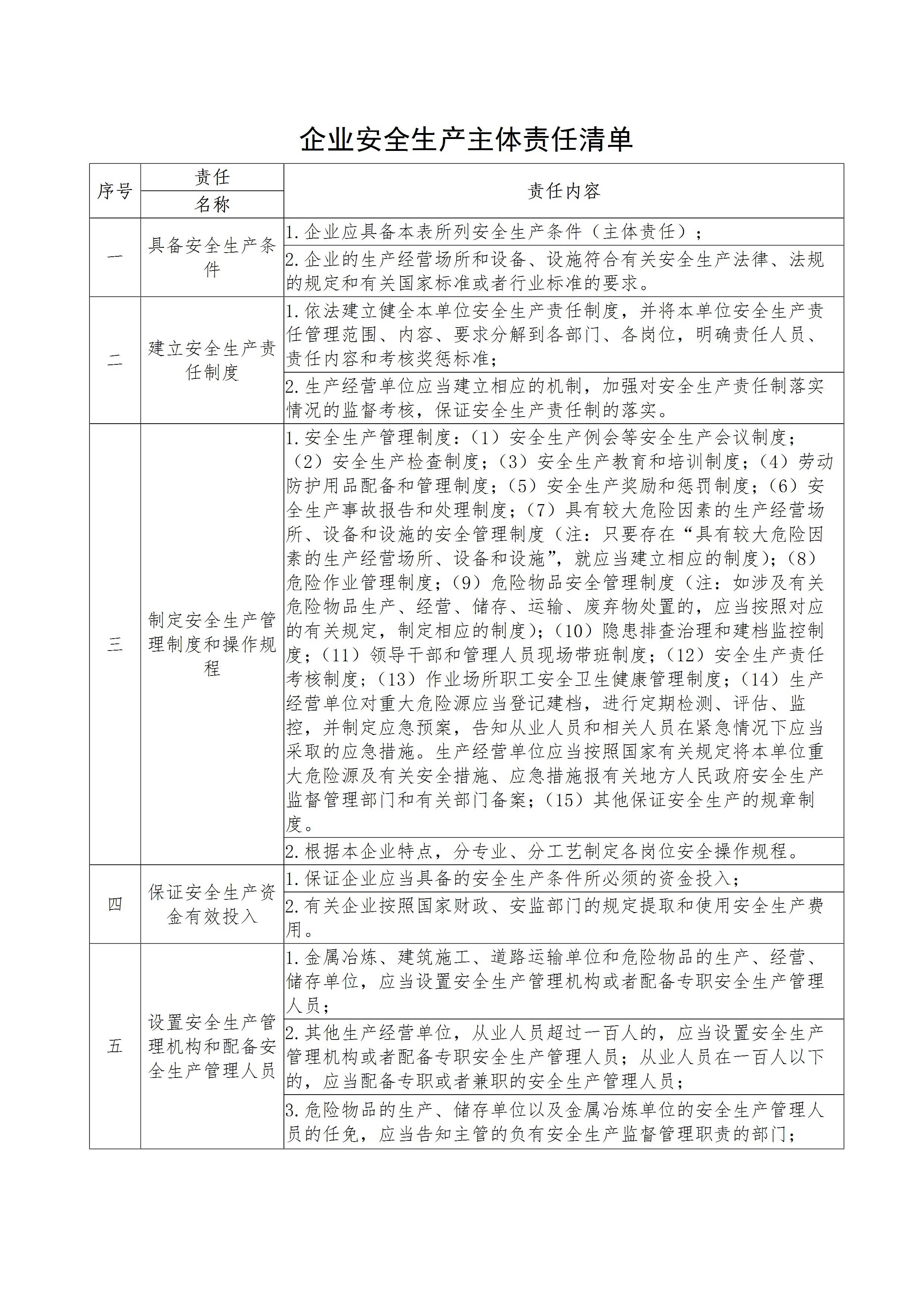 企业落实安全生产主体责任清单和检查内容资料[文档]