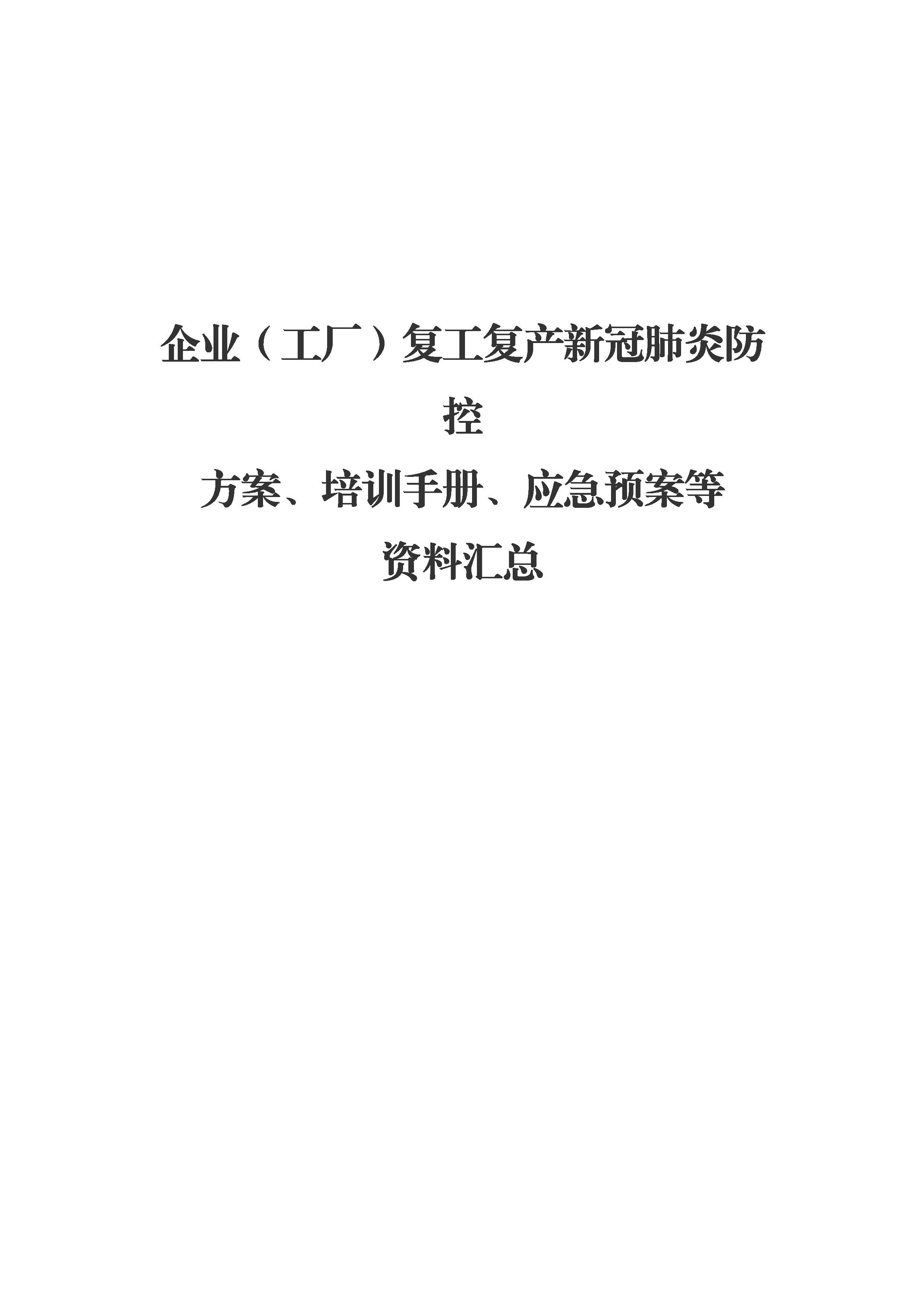 企业工厂复工复产新冠肺炎防控方案,培训手册,应急预案等资料资料汇编210页[文档]