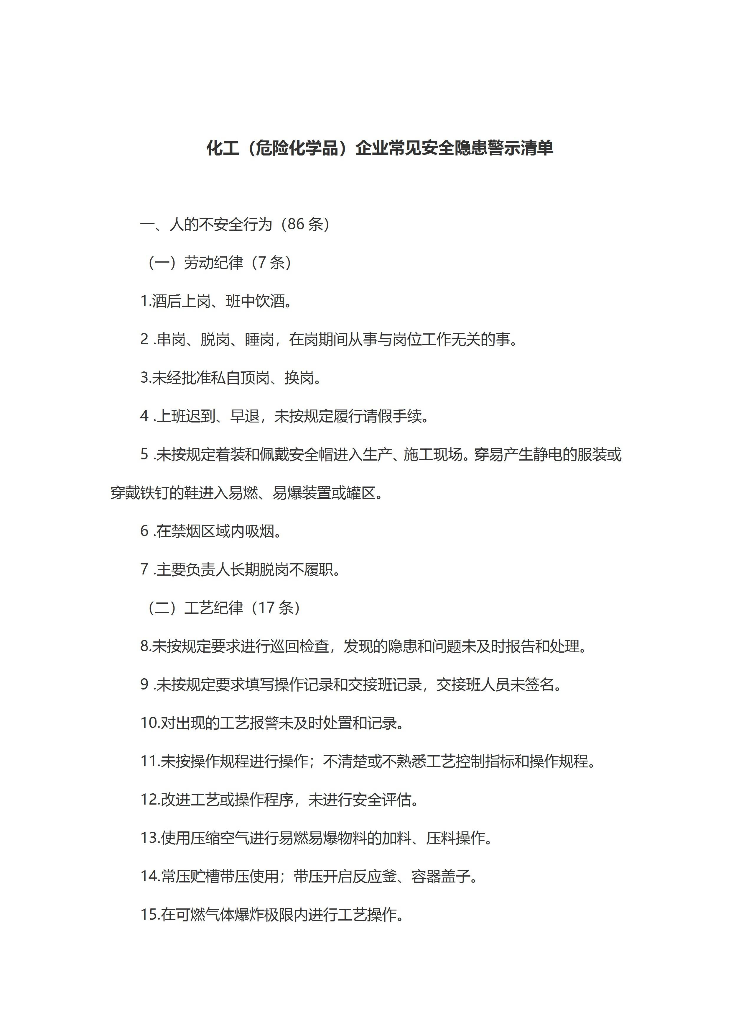 / 化工企业企业常见安全隐患警示清单[文档]