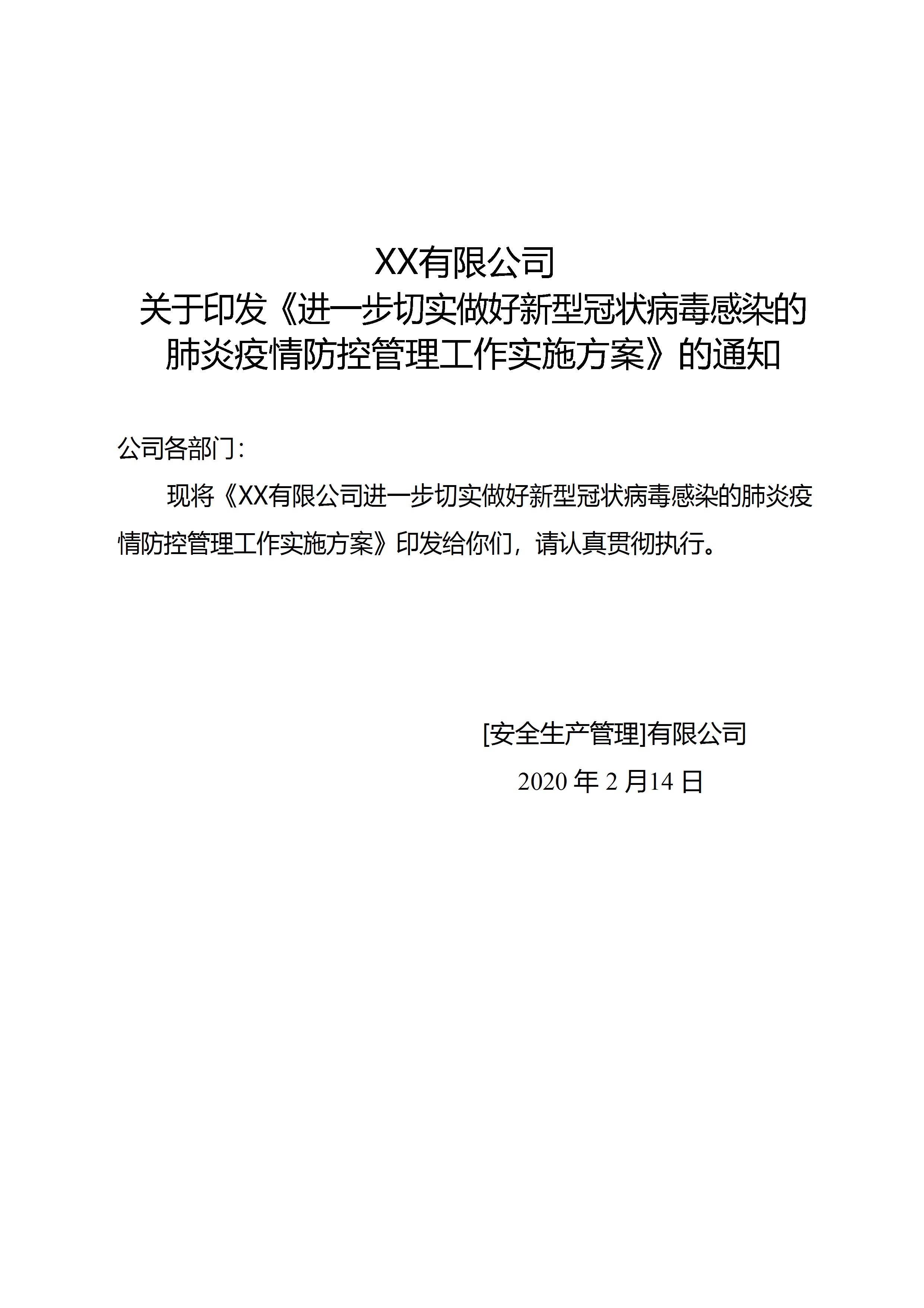 关于印发《进一步切实做好新型冠状病毒感染的肺炎疫情防控管理工作实施方案》的通知[文档]