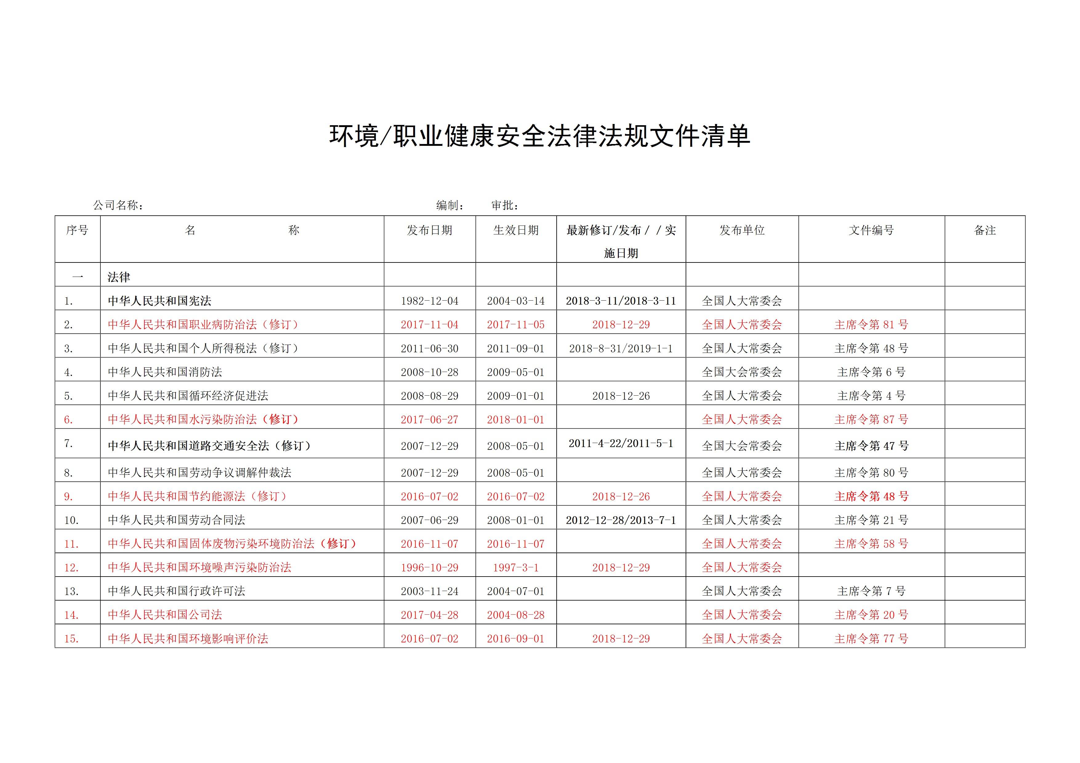法律法规文件清单EHS 安全,环境,职业健康[文档]