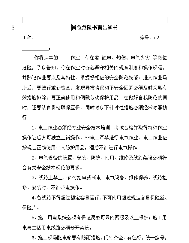 岗位危险告知书68页[文档]