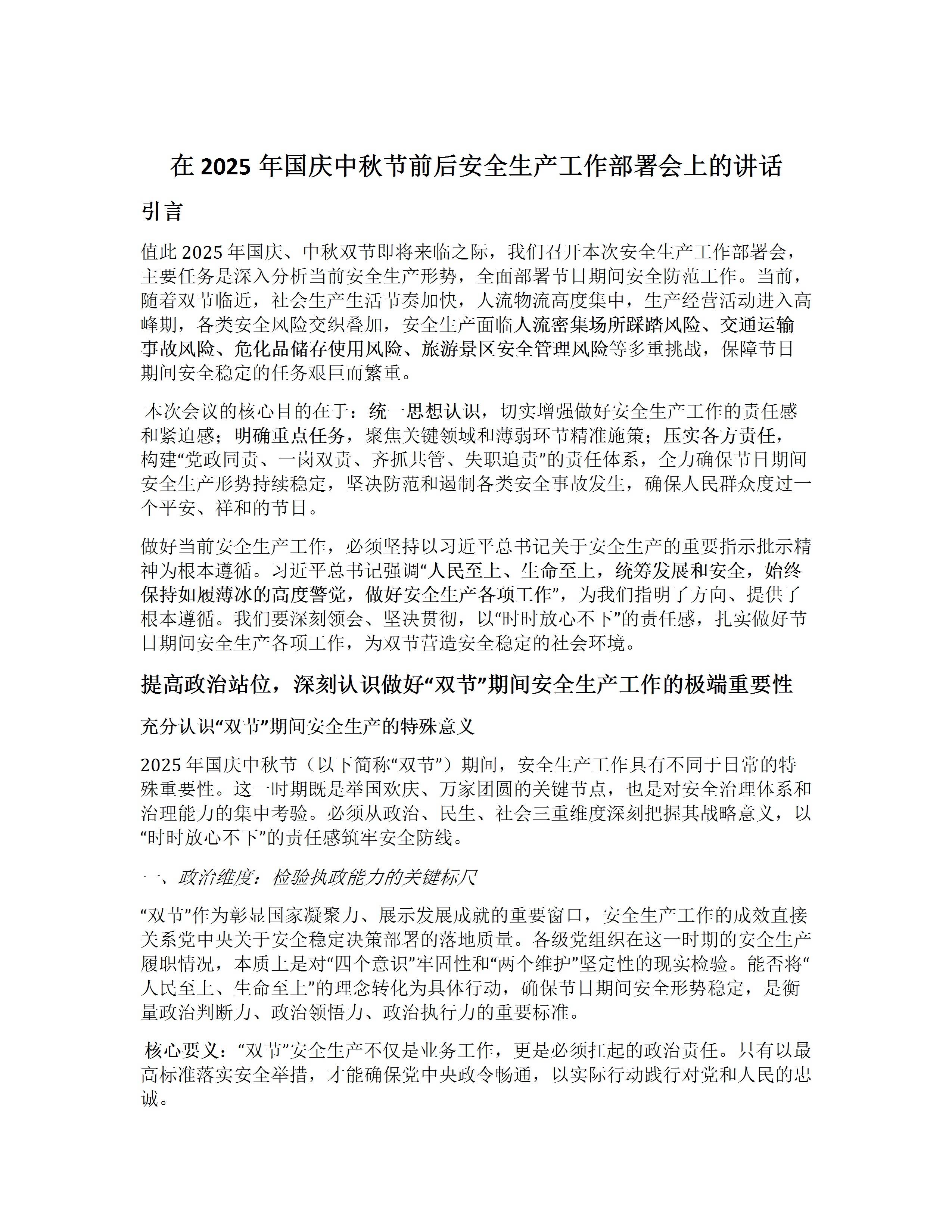 / 在2025年国庆中秋节前后安全生产工作部署会上的讲话[文档]