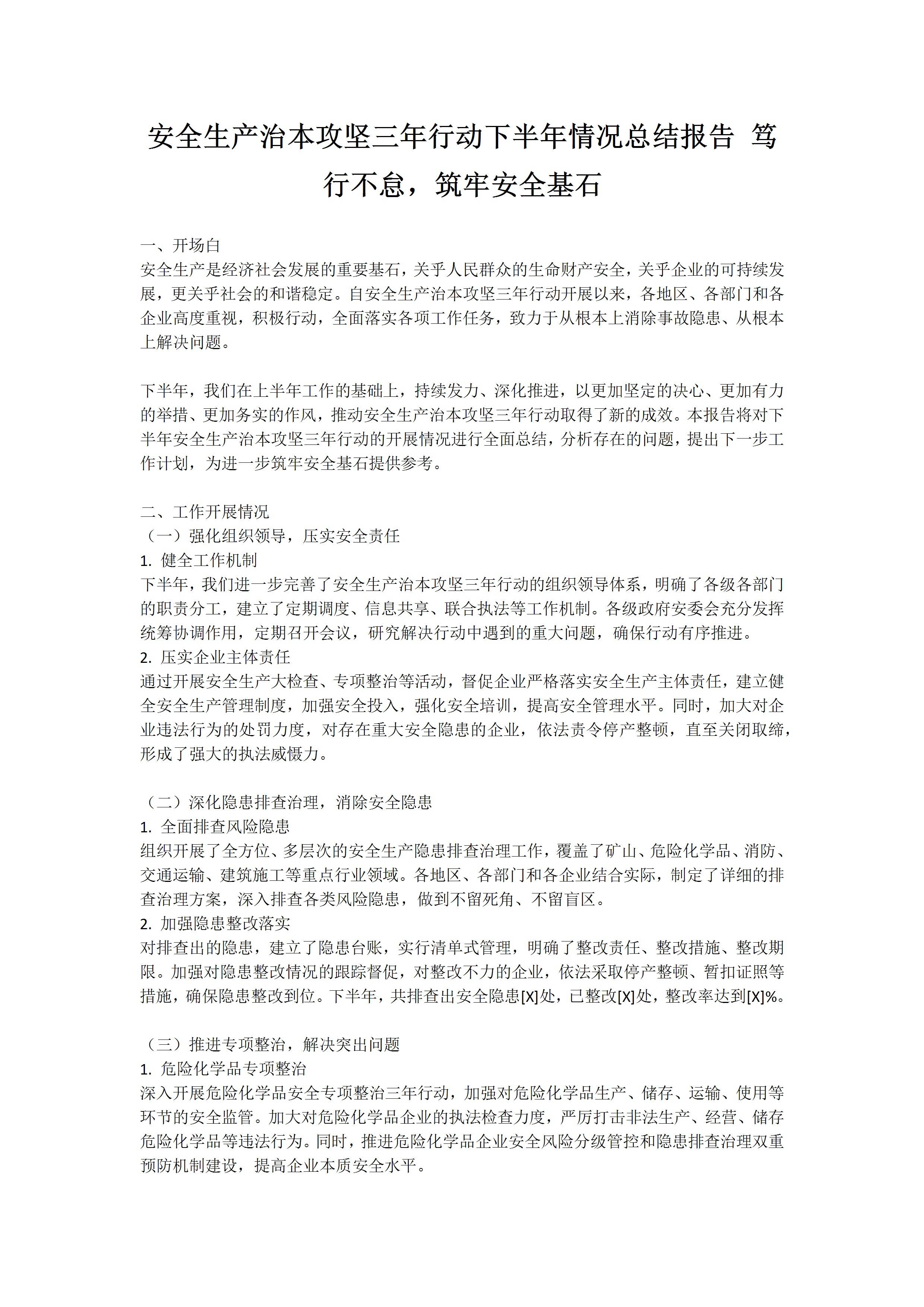 下半年安全生产治本攻坚:如磐坚守,为安全基石添砖加瓦[文档]