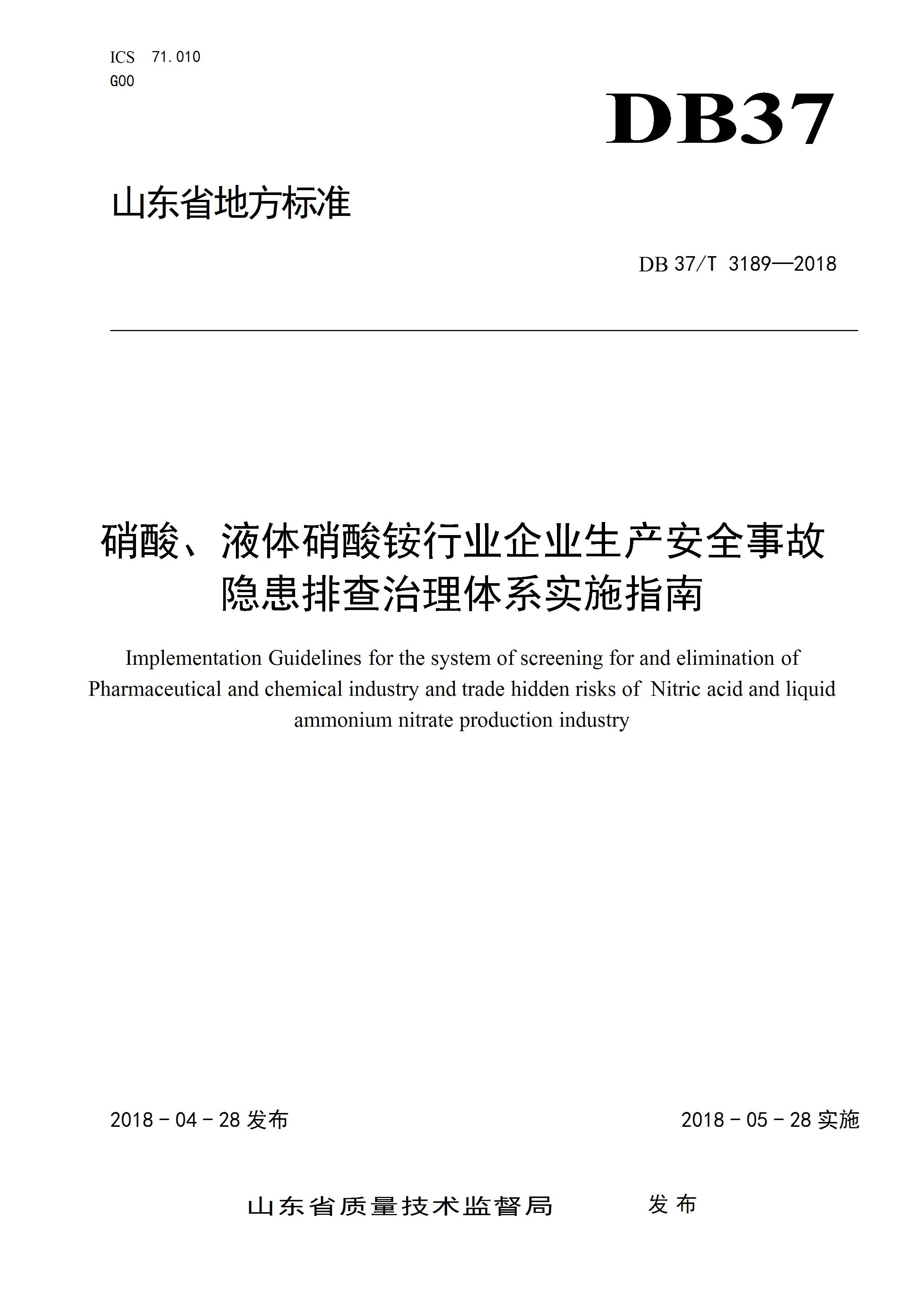 硝酸,液体硝酸铵行业企业生产安全隐患排查治理体系实施指南DB 37T 3189—2018[文档]