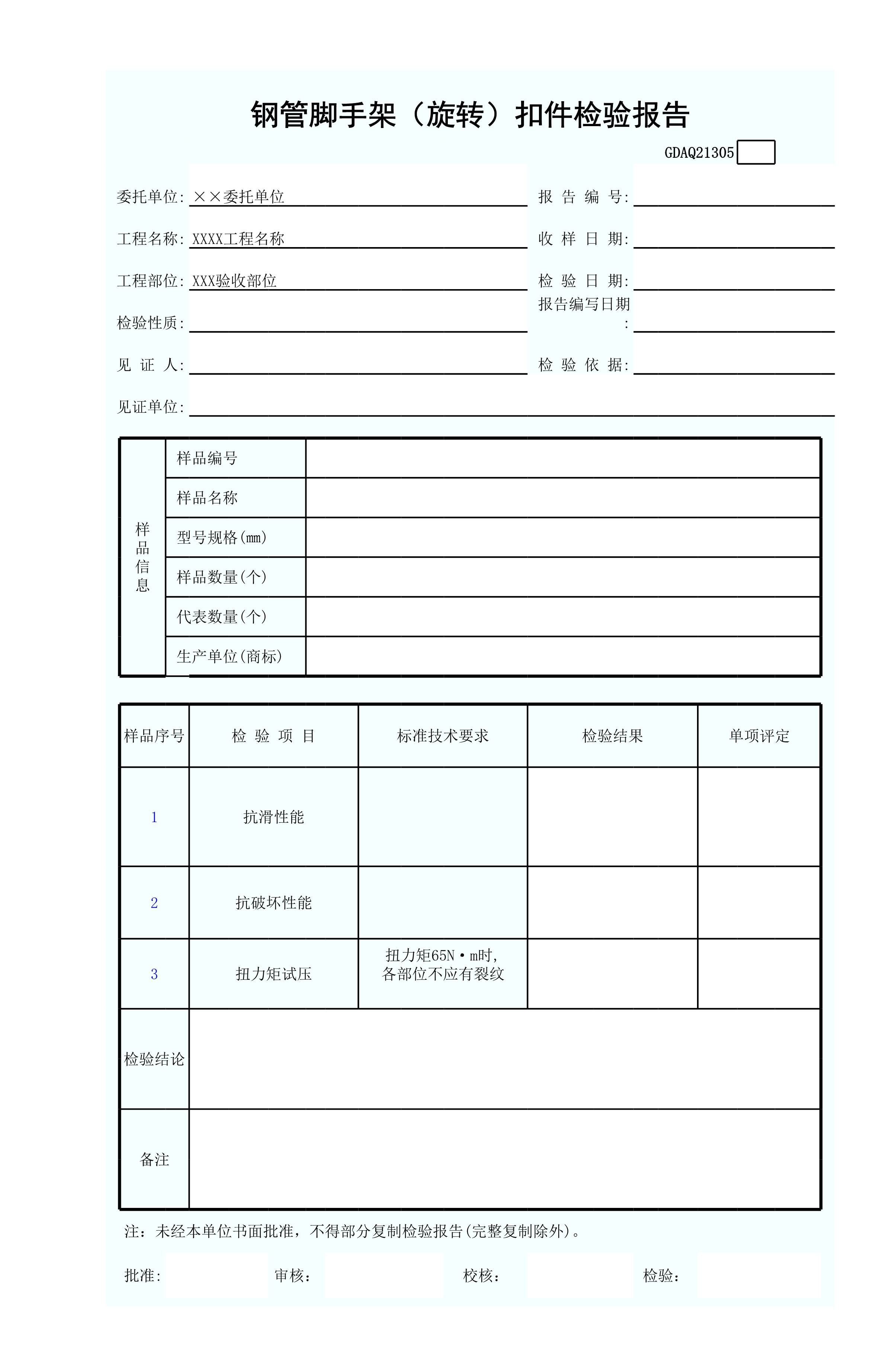 / 钢管脚手架旋转扣件检验报告GDAQ21305[表格版]