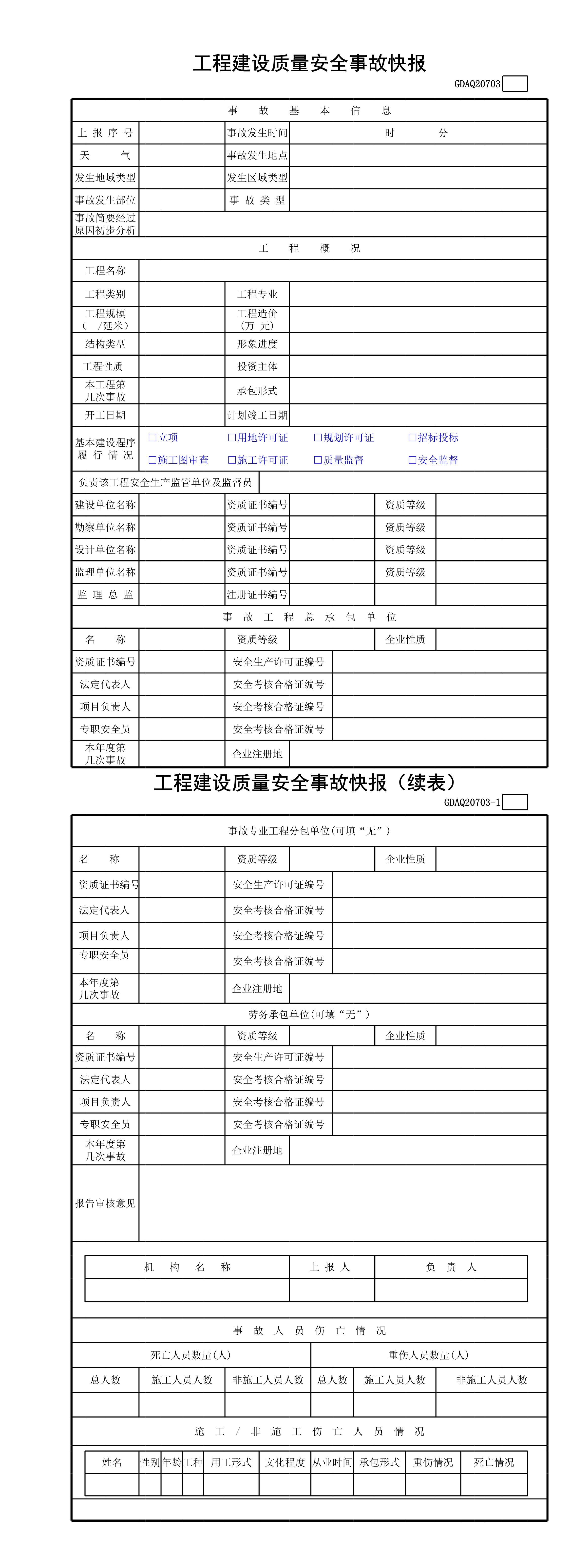 / 工程建设质量安全事故快报含续表GDAQ20703[表格版]