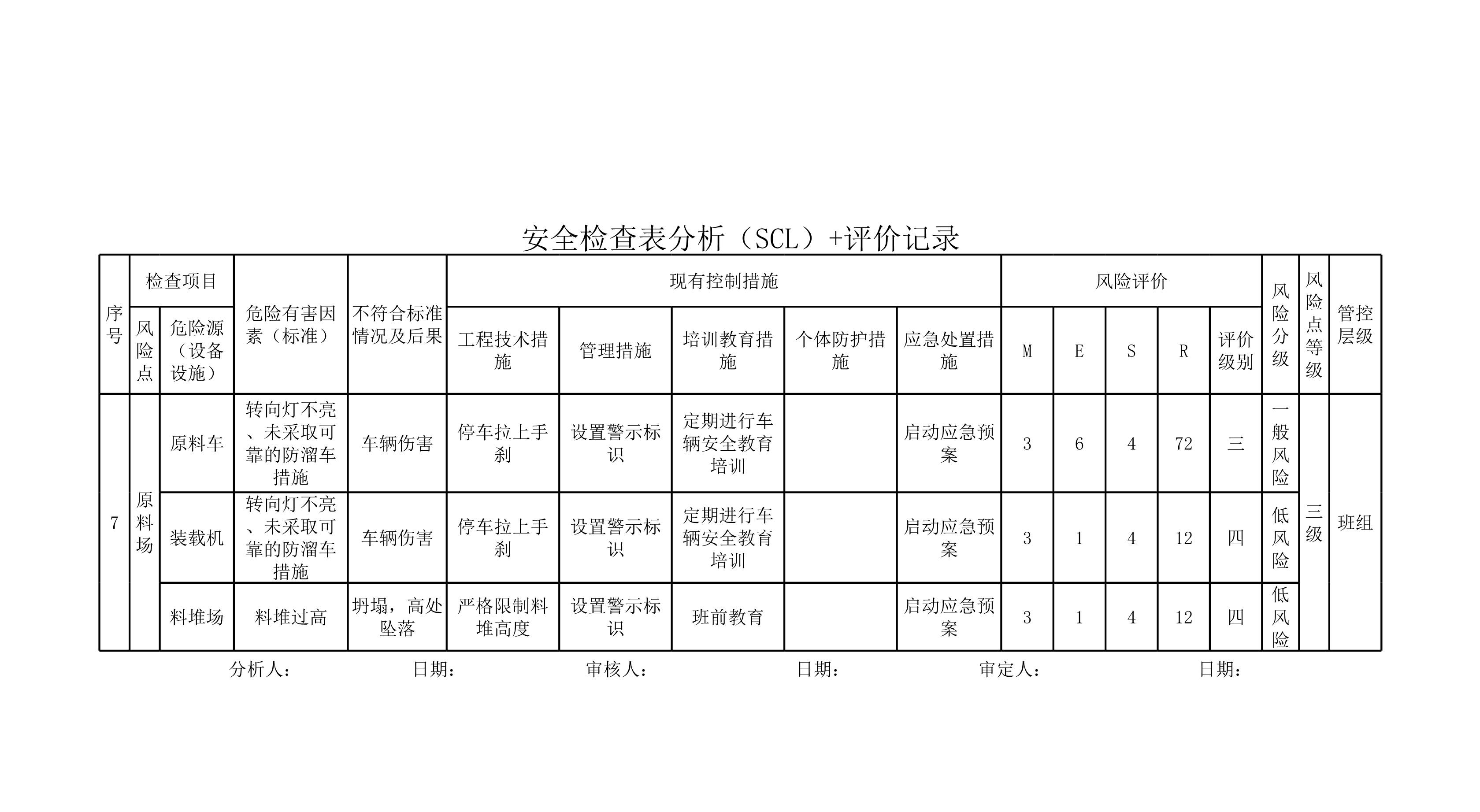 / 各个料棚安全检查表分析SCL评价记录[表格版]