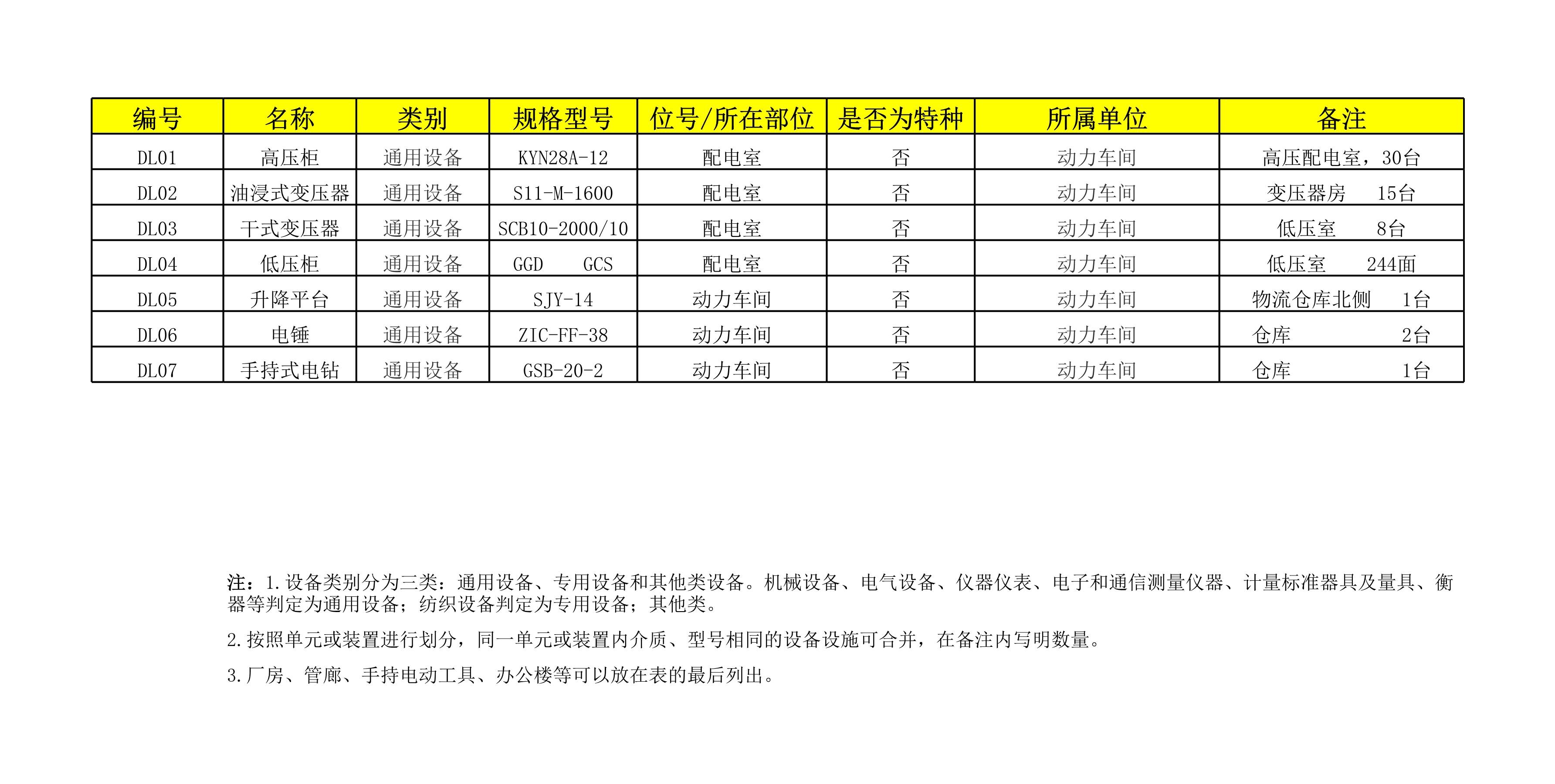 动力车间设备设施清单[表格版]