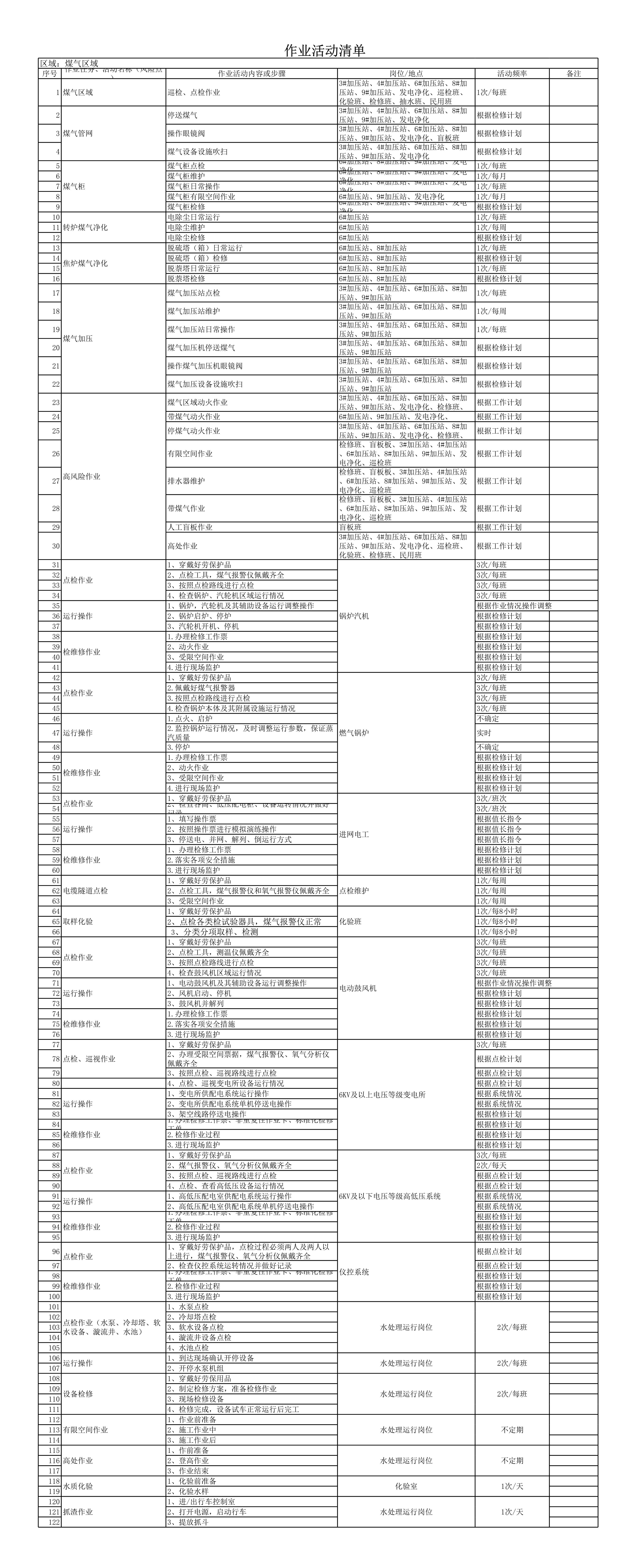 / 公辅系统安全生产风险分级管控成果[表格版]