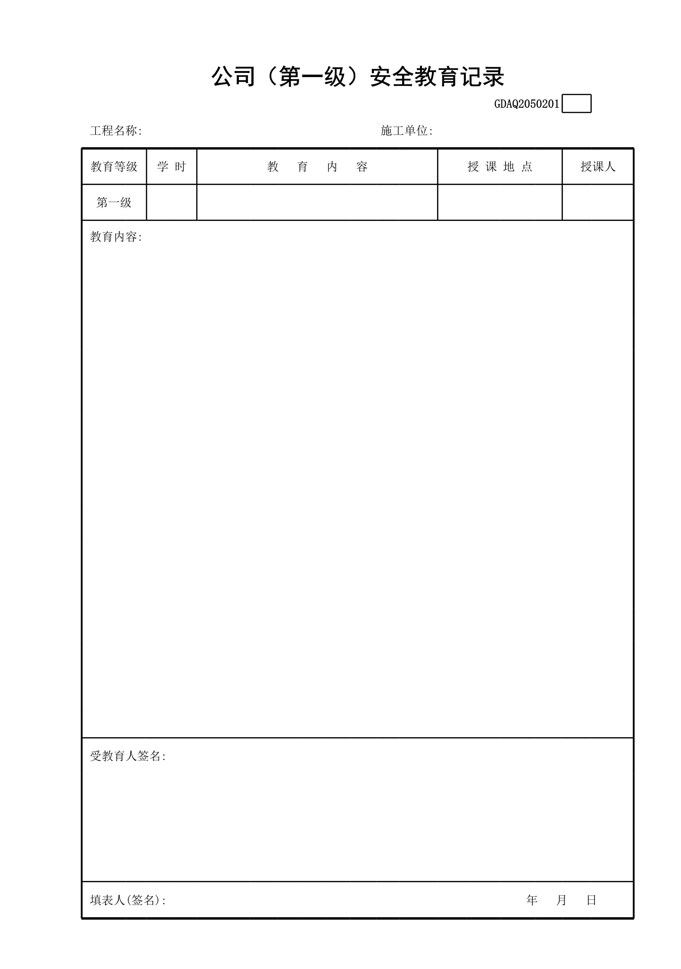 公司第一级安全教育记录GDAQ2050201[表格版]