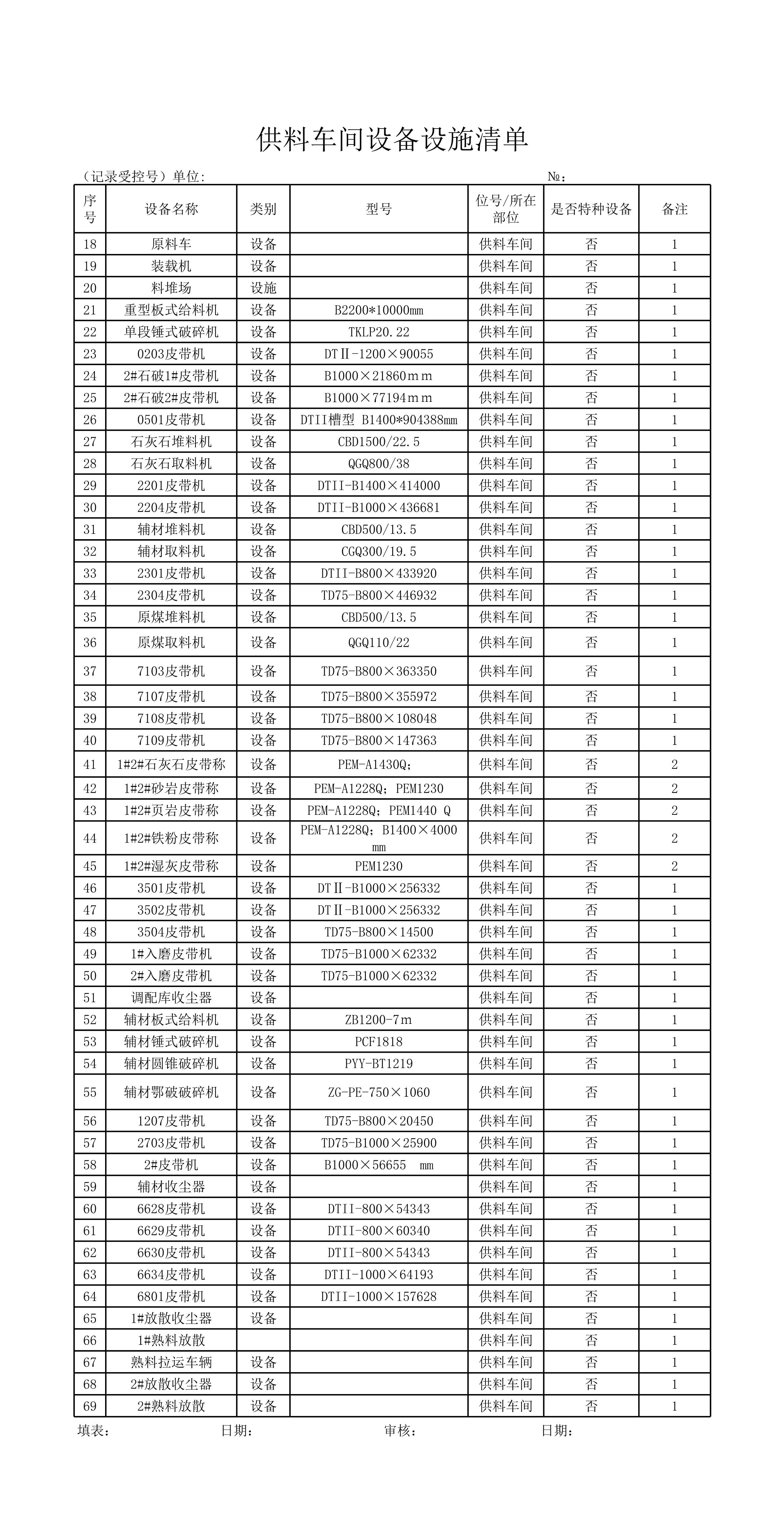 / 供料车间设备设施清单[表格版]