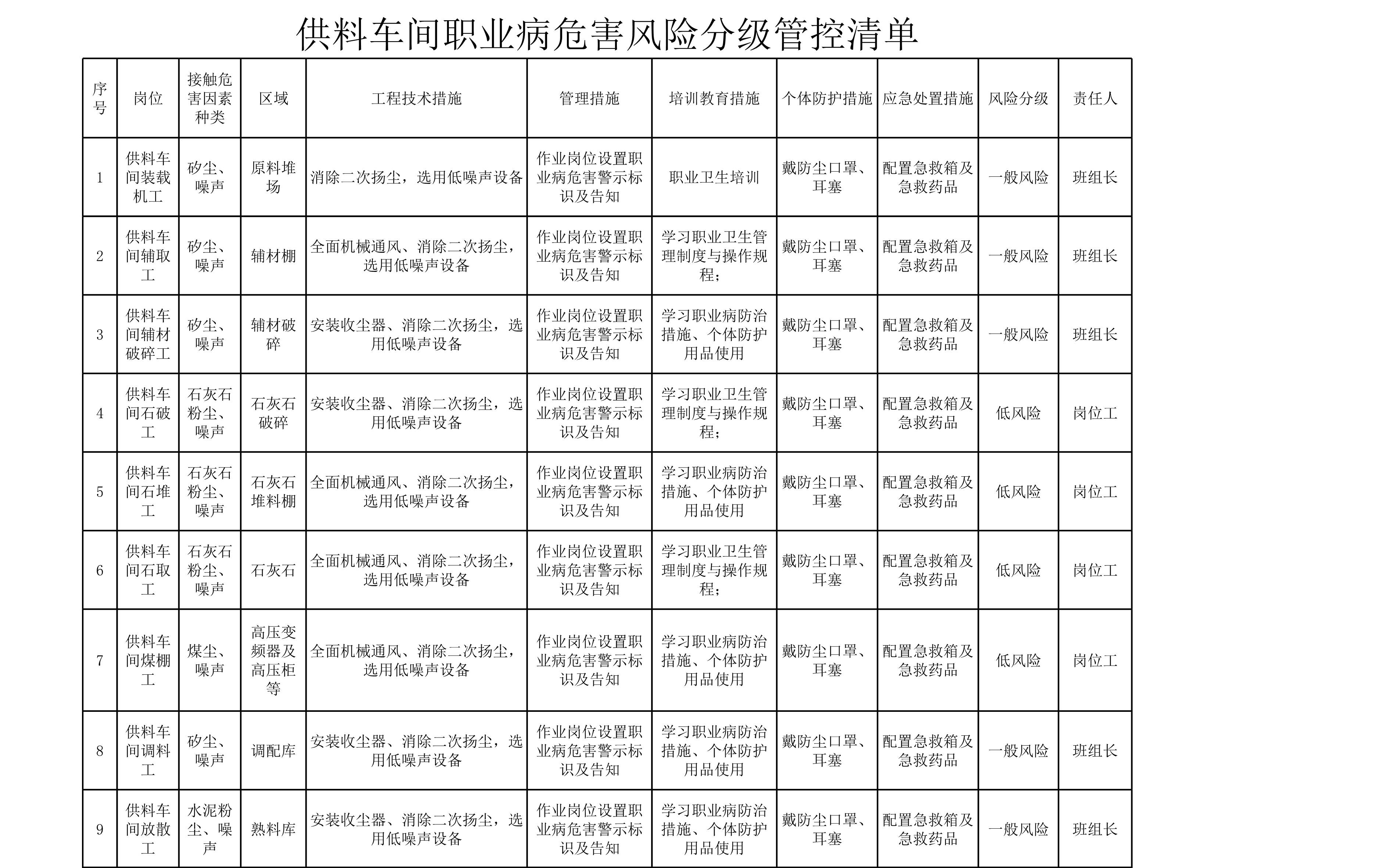 / 供料车间职业病危害风险分级管控清单[表格版]