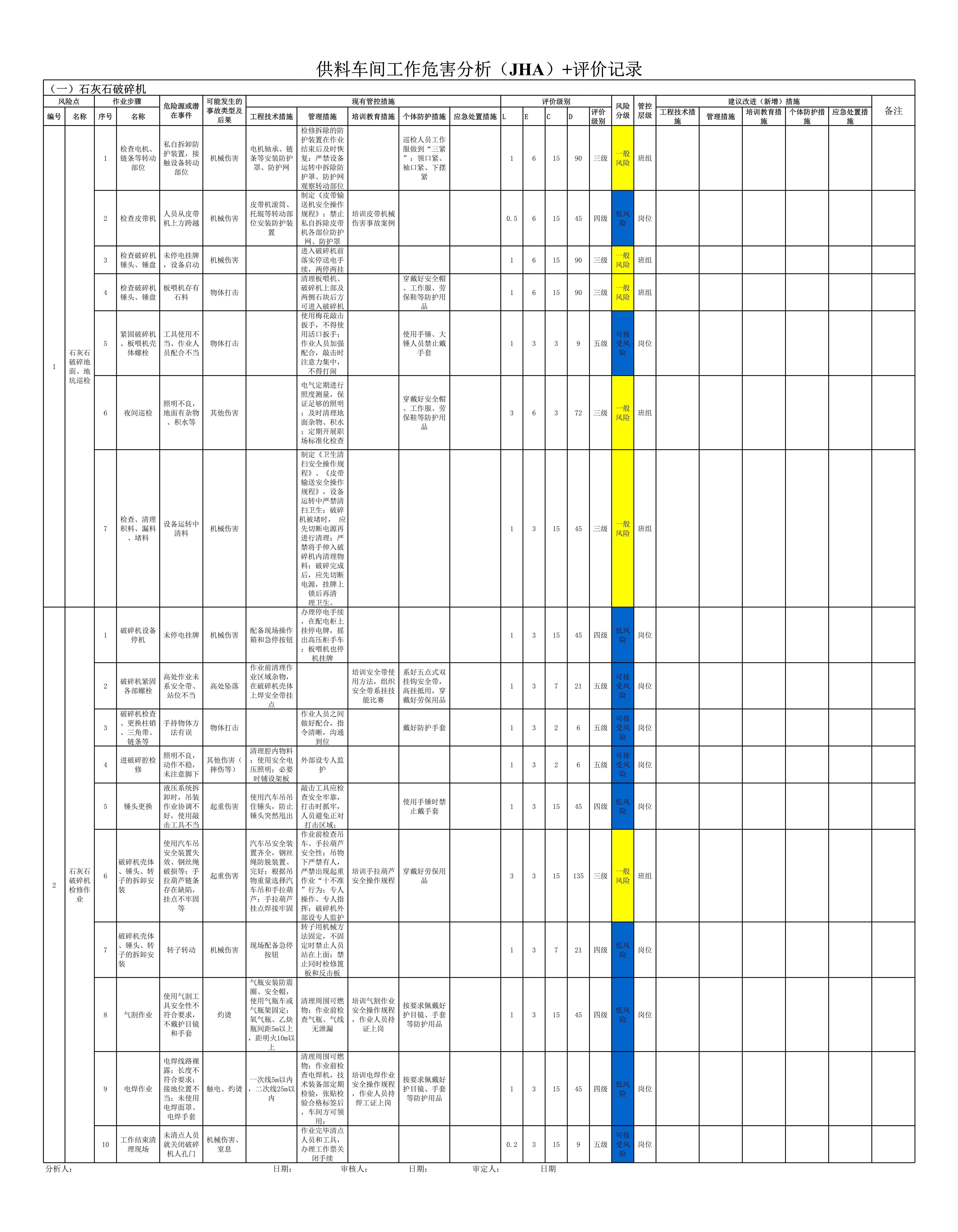 / 供料车间工作危害分析JHA评价原始记录[表格版]