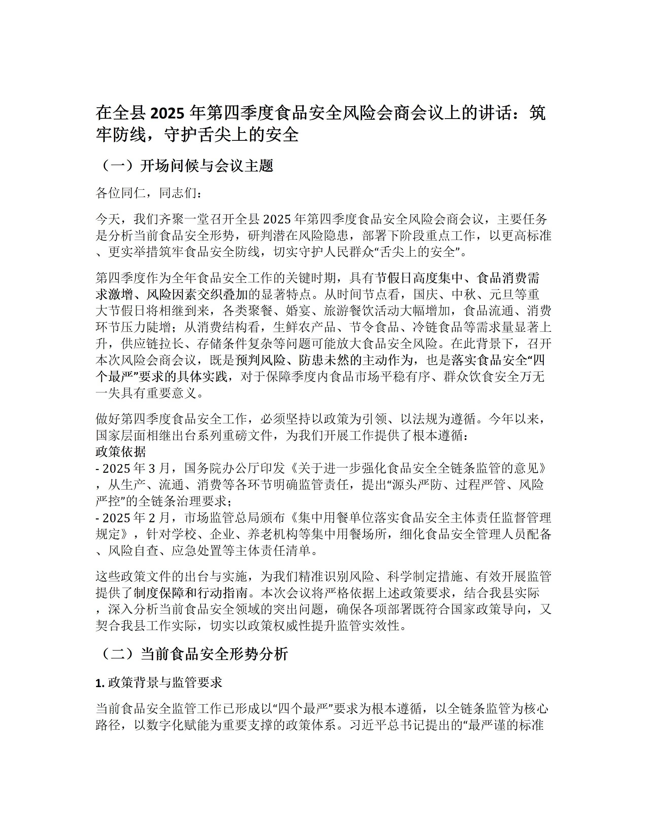 在全县2025年第四季度食品安全风险会商会议上的讲话筑牢防线,守护舌尖上的安全[文档]