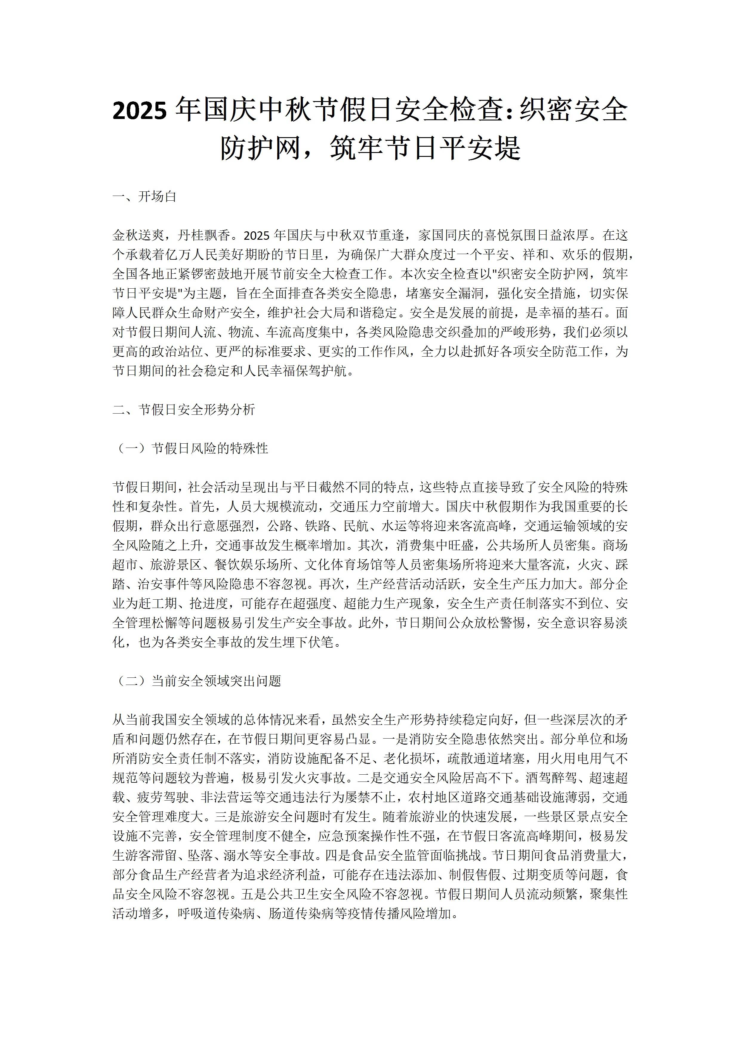 / 2025年国庆中秋节假日安全检查:织密安全防护网,筑牢节日平安堤