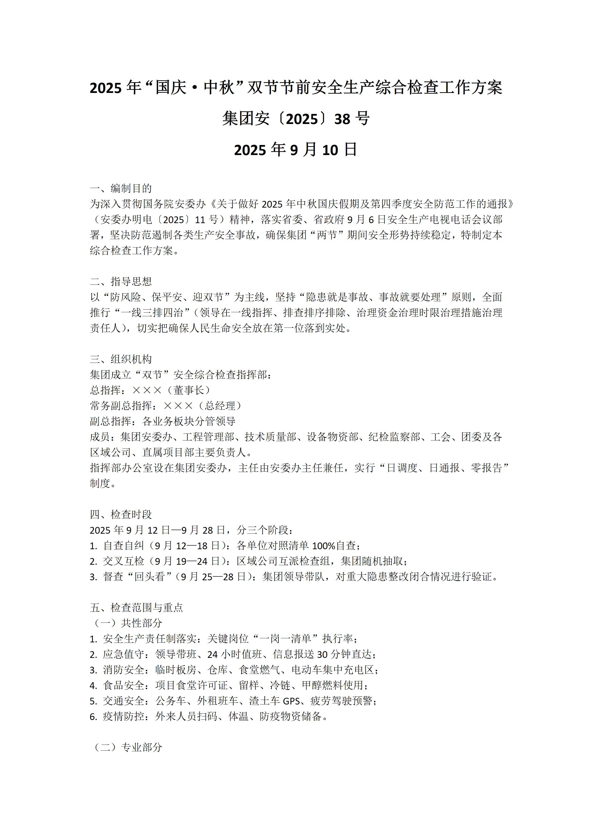 / 2025年国庆中秋双节节前安全生产综合检查工作方案[文档]