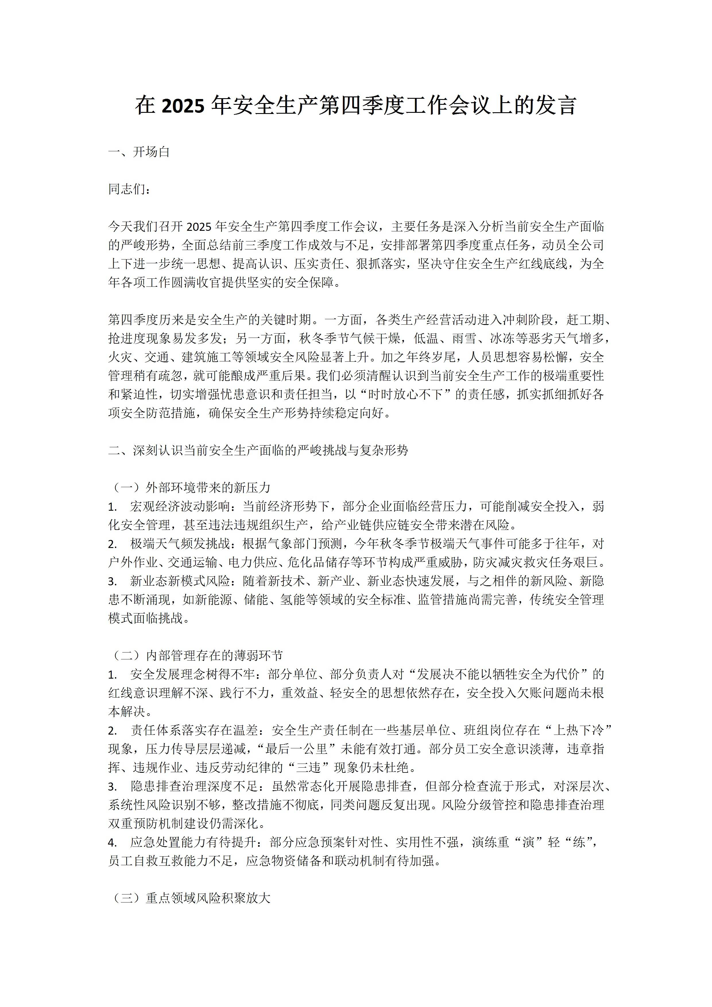 / 在2025年安全生产第四季度工作会议上的发言 文档
