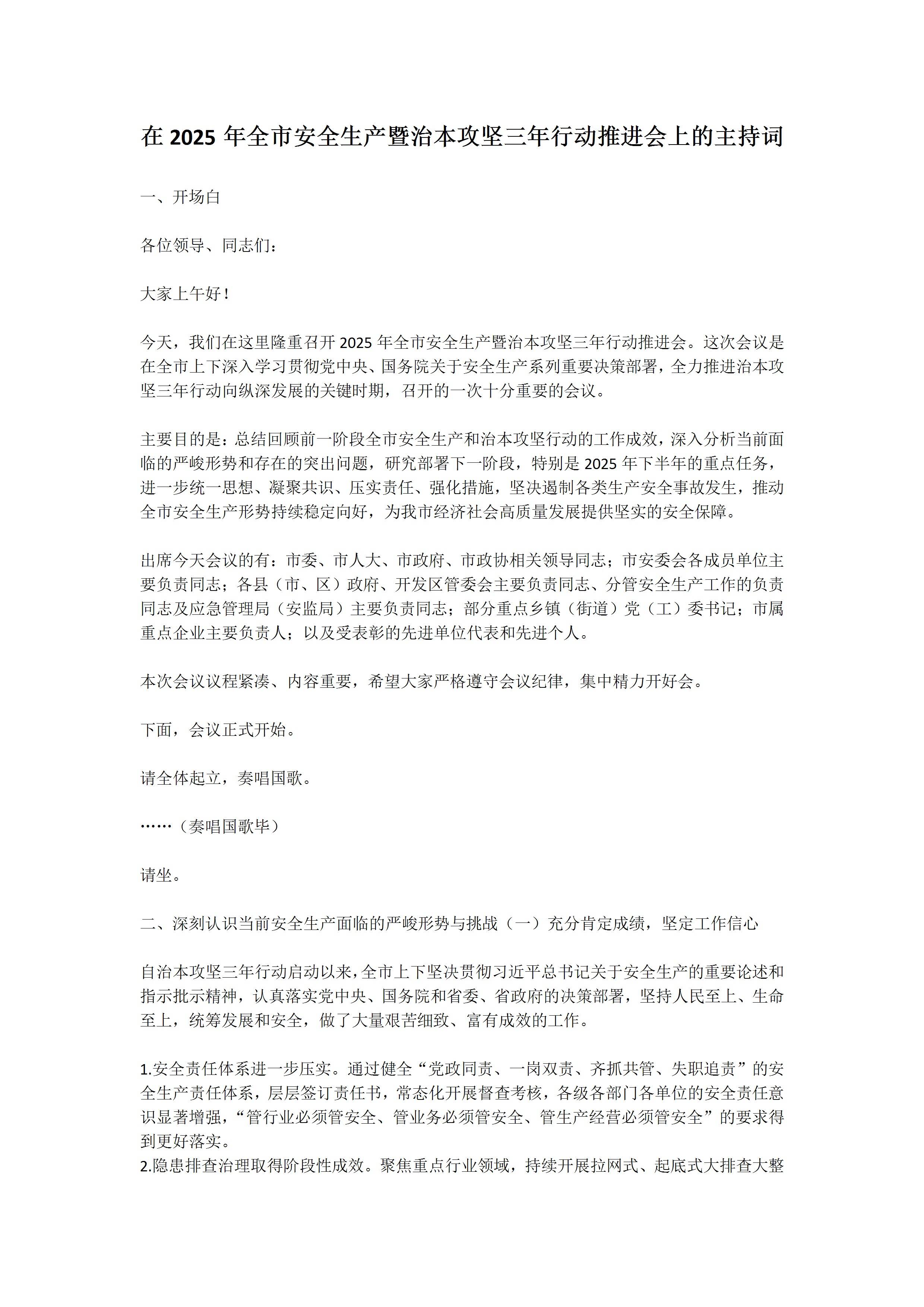 / 在2025年全市安全生产暨治本攻坚三年行动推进会上的主持词 文档