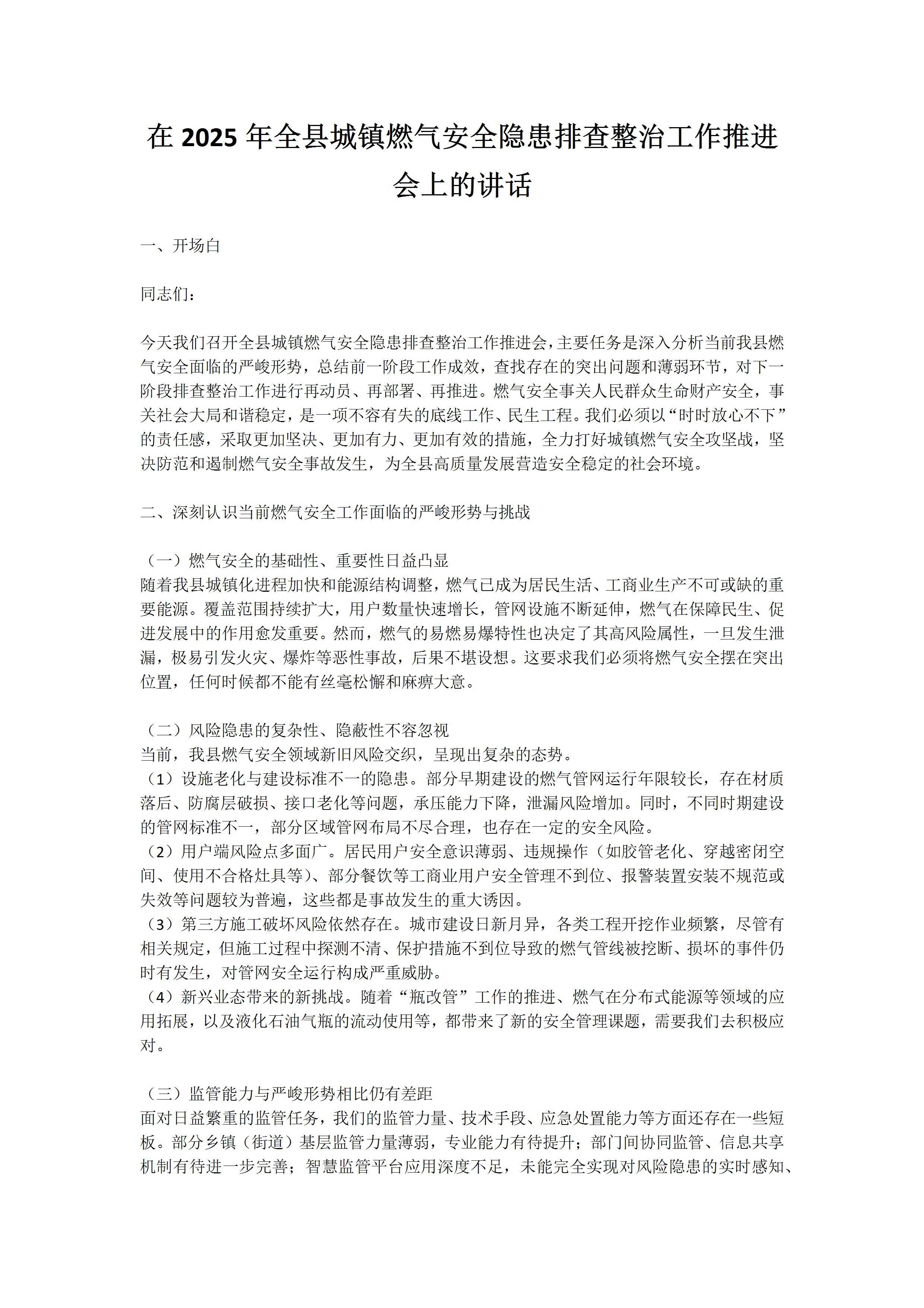 在2025年全县城镇燃气安全隐患排查整治工作推进会上的讲话9.27 文档