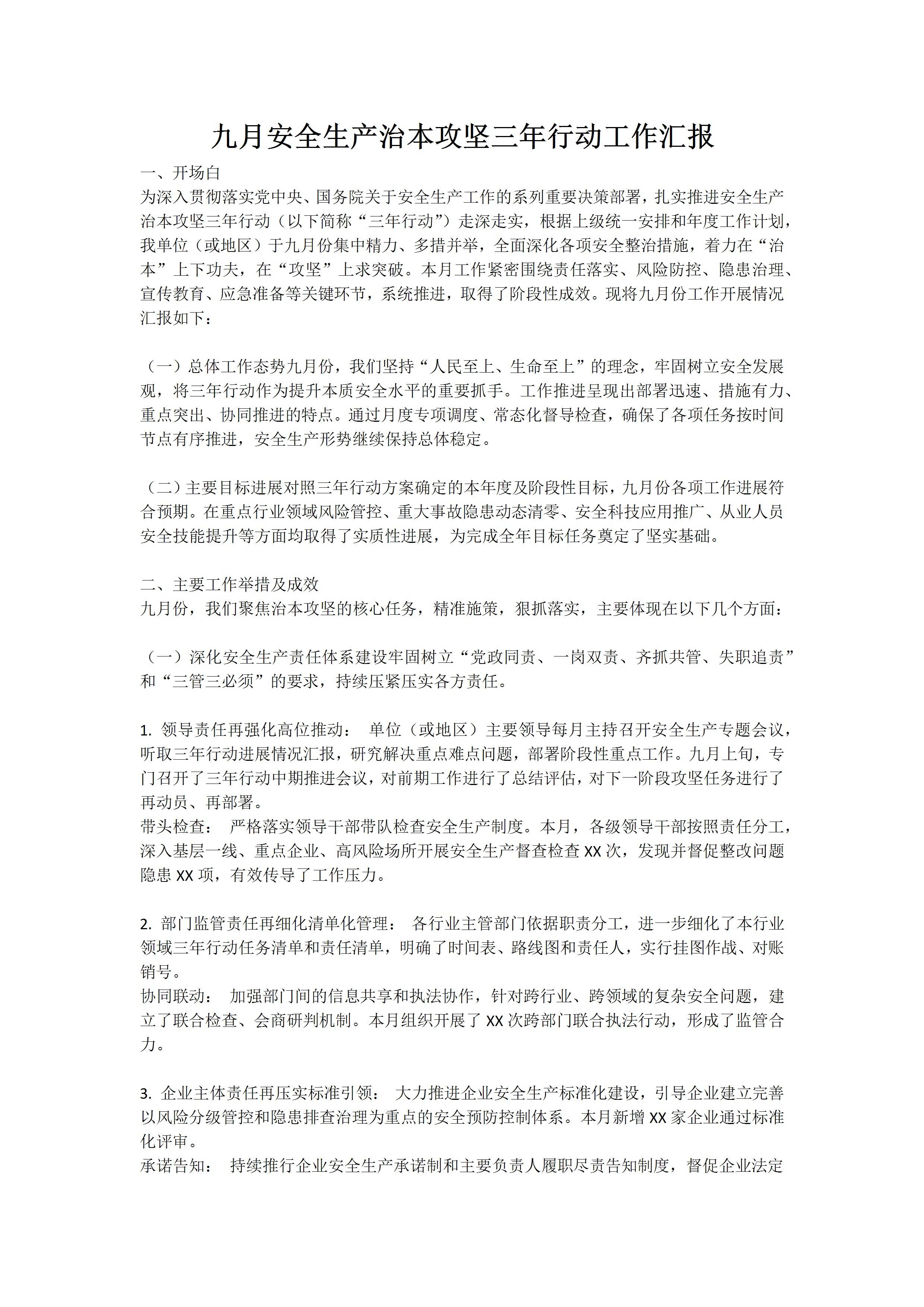 / 九月安全生产治本攻坚三年行动工作汇报9.29 文档