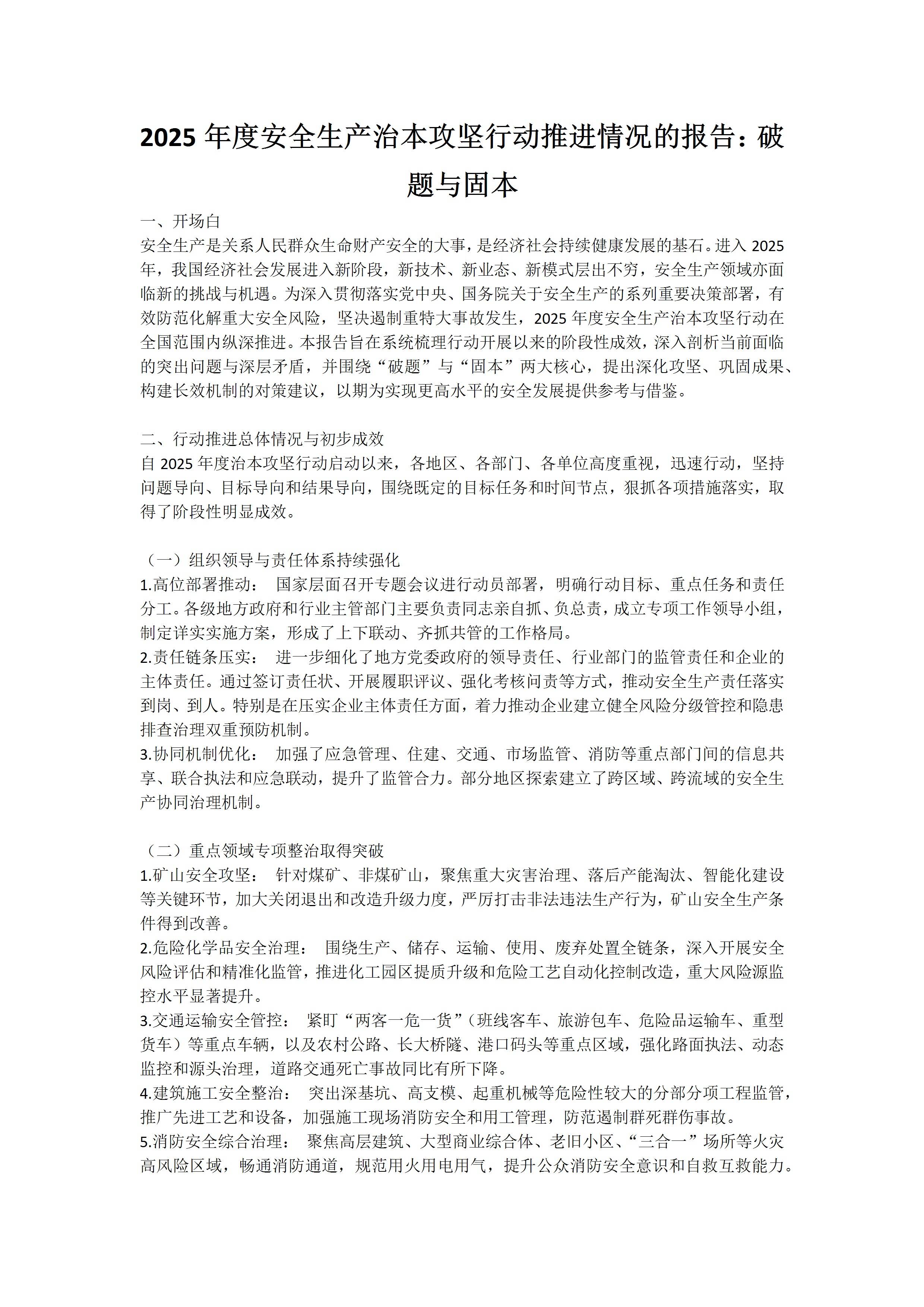 2025年度安全生产治本攻坚行动推进情况的报告破题与固本9.29 文档