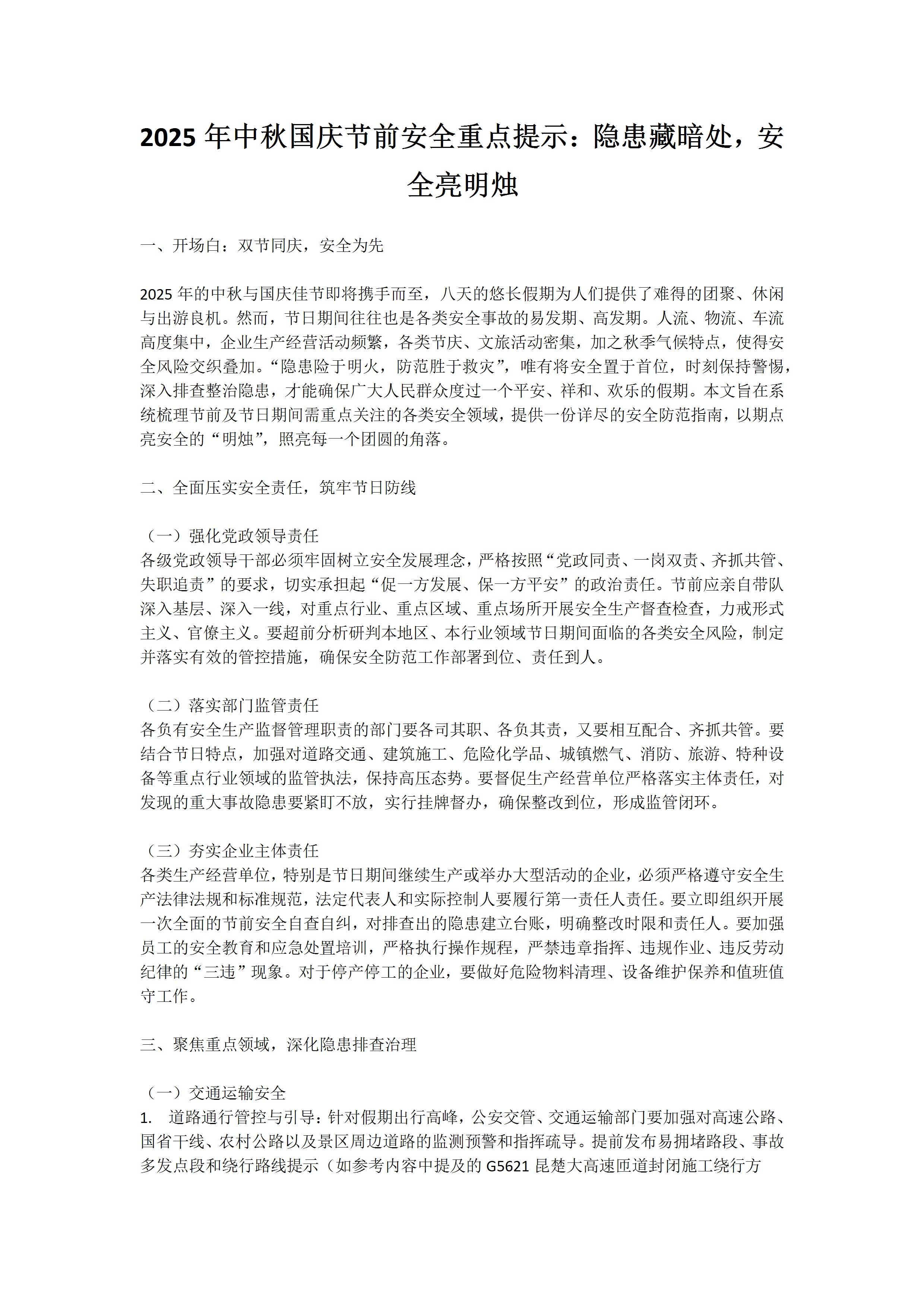 2025年中秋国庆节前安全重点提示隐患藏暗处,安全亮明烛9.29 文档