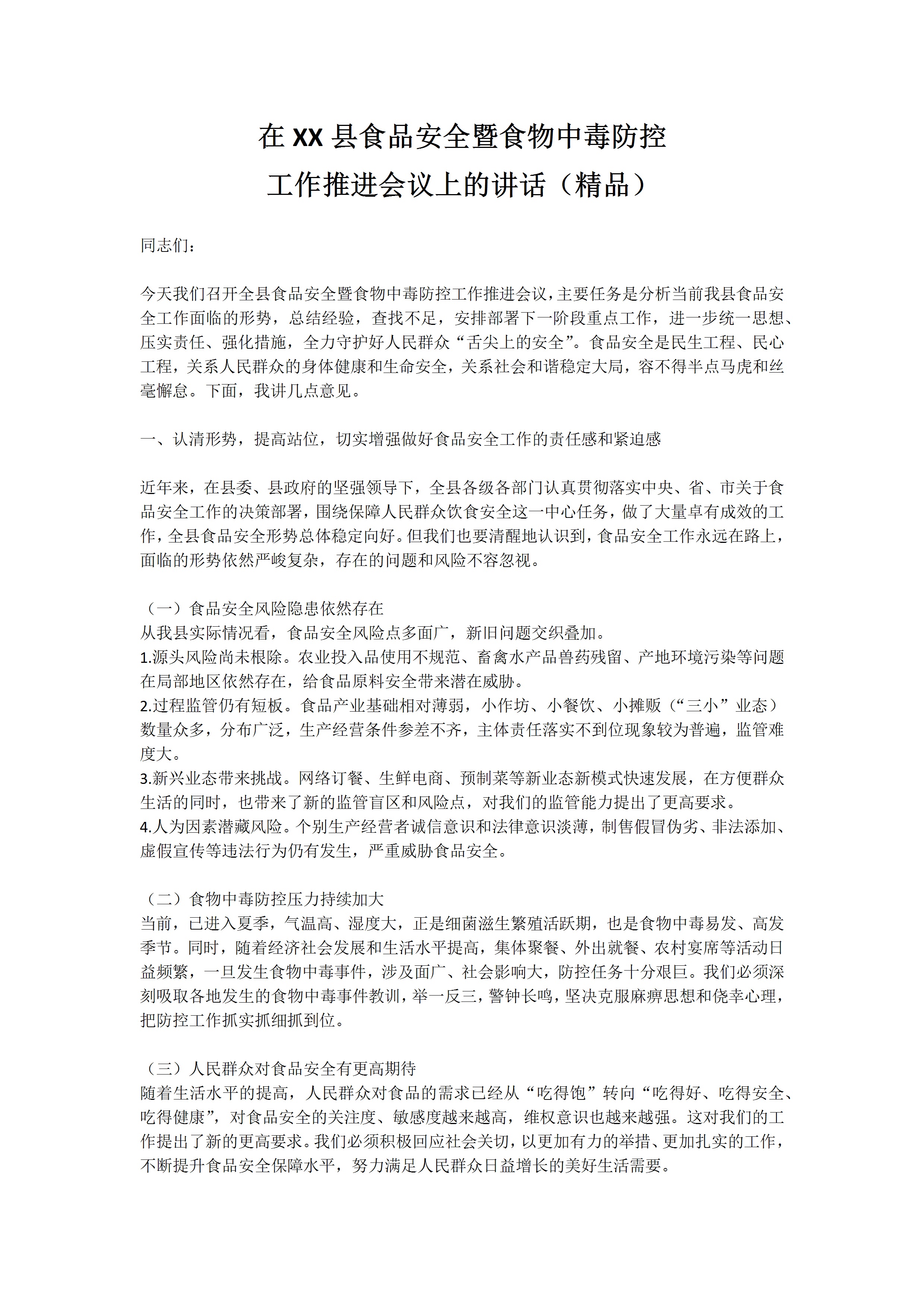 在xx县食品安全暨食物中毒防控工作推进会议上的讲话精品3.3 0 文档