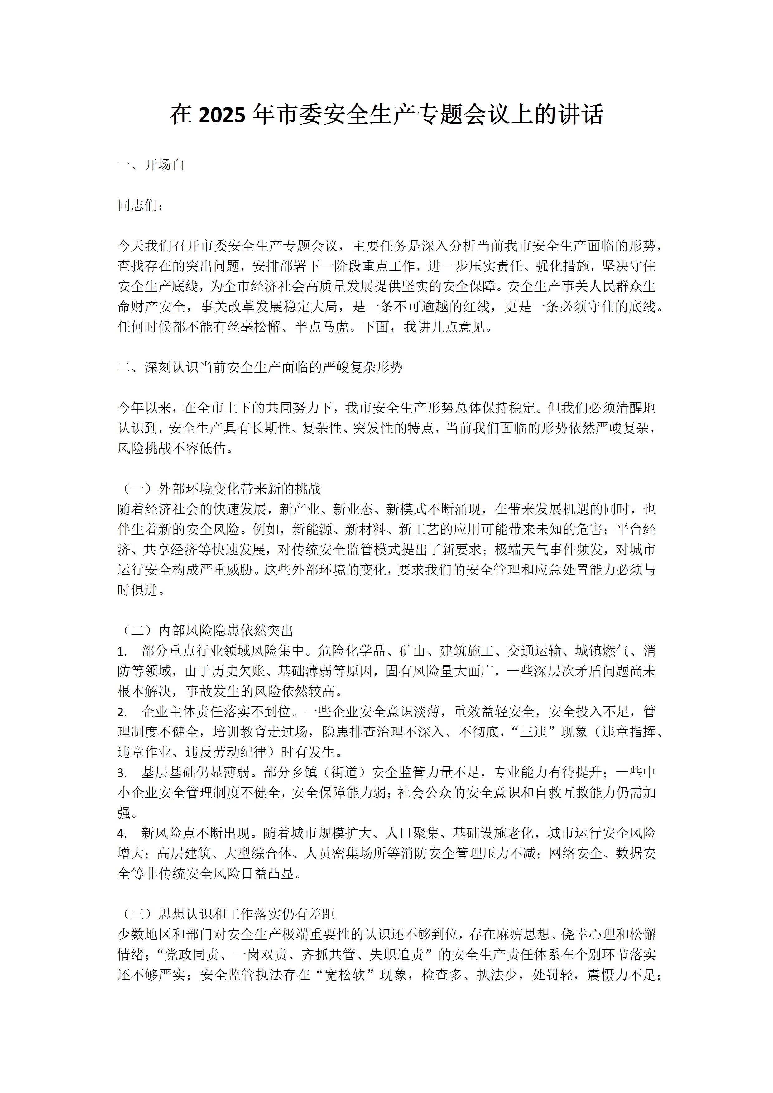 / 在2025年市委安全生产专题会议上的讲话3.3 0 文档