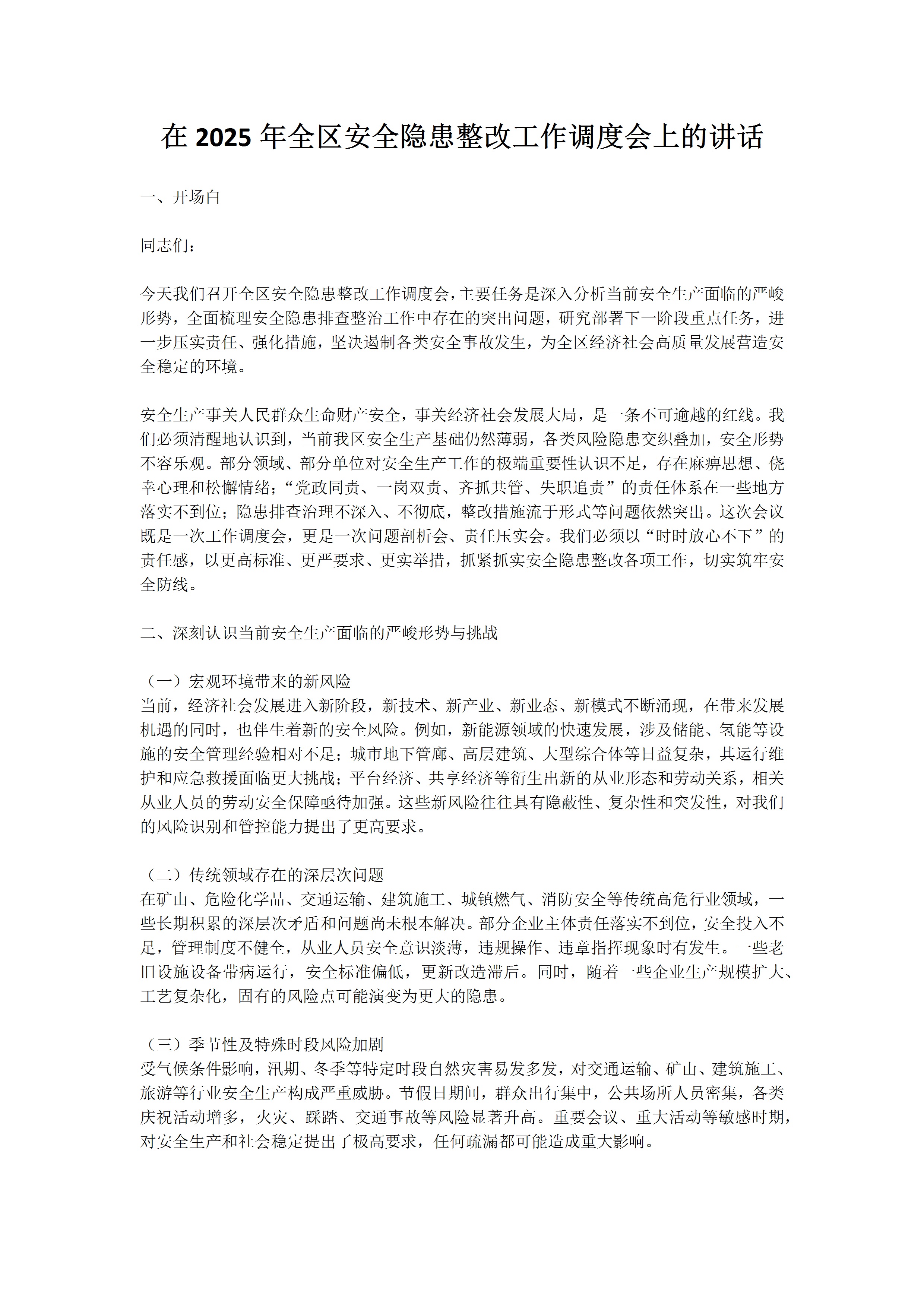 在2025年全区安全隐患整改工作调度会上的讲话3.3 0 文档